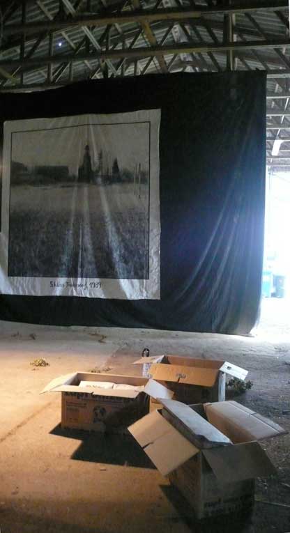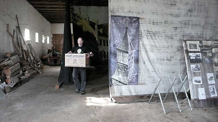 den Puppen nach und den 10 Projektionen für einen Raum an einem Tag von abends(18 Uhr) bis Mitternacht. Zur berichten von hier und sonst nichts von einem Tag im Sommer dieses Jahres. Und einem freien Weges zu dem Turm, der bald wieder stehen soll.