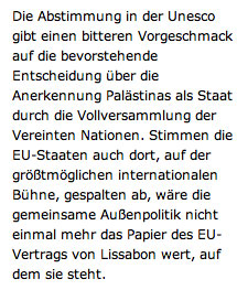 Die Kultur macht den Anfang. Was die Europäer nicht verstehen, wenn sie im Sumpf der Händler gedemütigt werden, wo sie herkommen und wieder hinmüssen. Die Leisetreter in Deutschalnd nun offen, die USA nur noch Geld-Argumente, die politischen Rassisten in Israel, werden mit den Waffen der Mehrheit widerlegt.