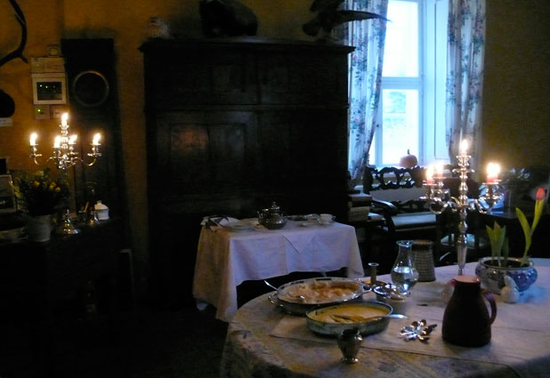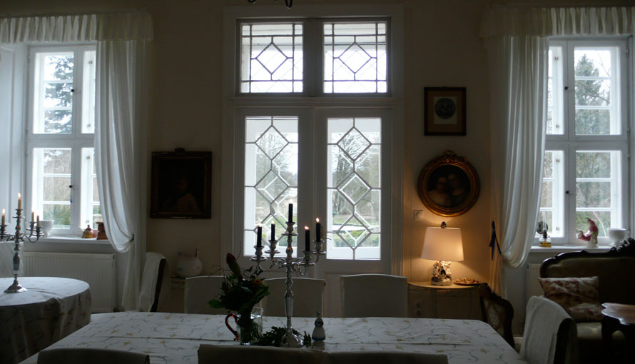 So wie es von aussen kalt und grau ist, wärmen nicht nur die Kamine und leuchten die Kerzen von innen, auch die alten Mauern und doppelten Fensetr nach alter Art, machen die Seelen wohlgestalt.