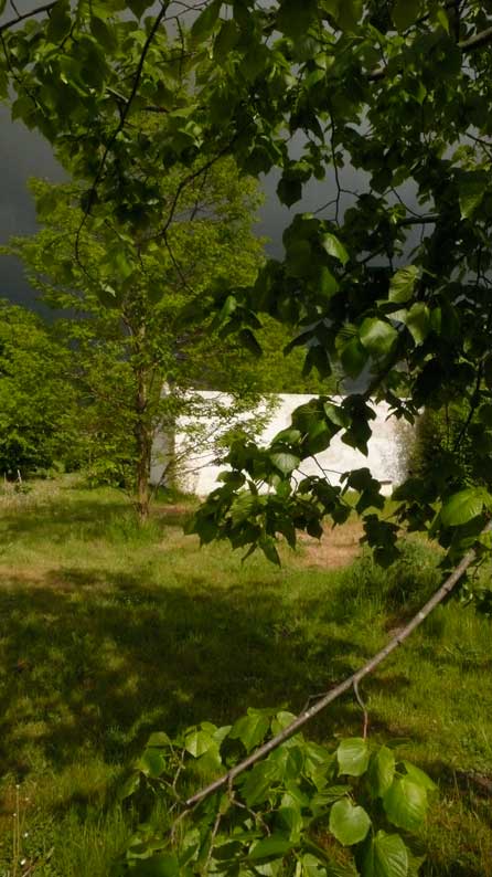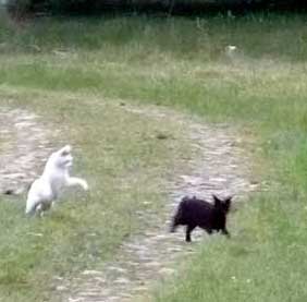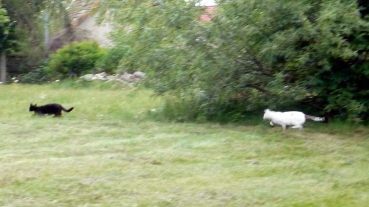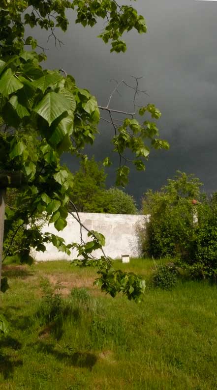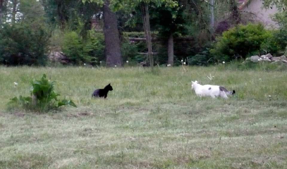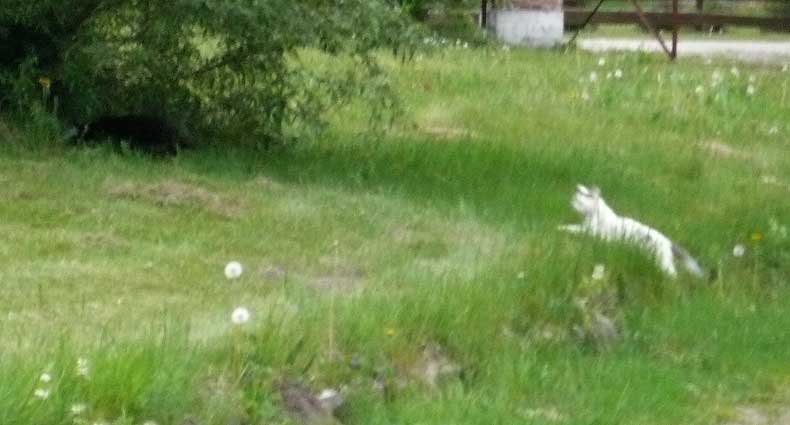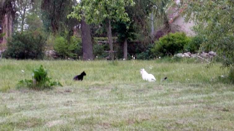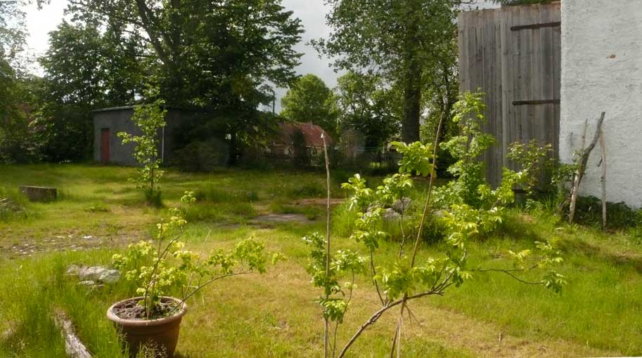 Der Zaun des Nachbarn. wo der Weg durch muss, ist schon geöffnet für diesen Tag.