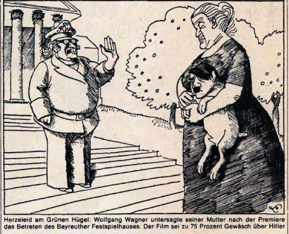 1977 verbannte Wolfgang Wagner seine Mutter vom Hügel des Festspielhauses in Bayreuth weil sie in einem Film über Hitler im Haus Wagner berichtete hatte. Diese Verbannung machte - weltweit - grossen Eindruck. Das Gelächter war immer dabei. Heute ist der Film mit ihr dmit Ihren Aussagen der am meisten Gefragte von allen Angebotenen hier - weltweit, am meisten die englische Version.