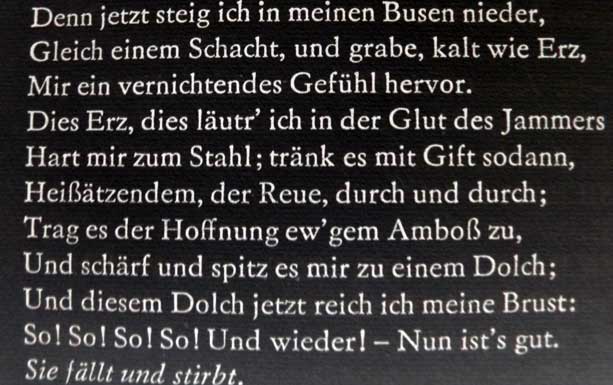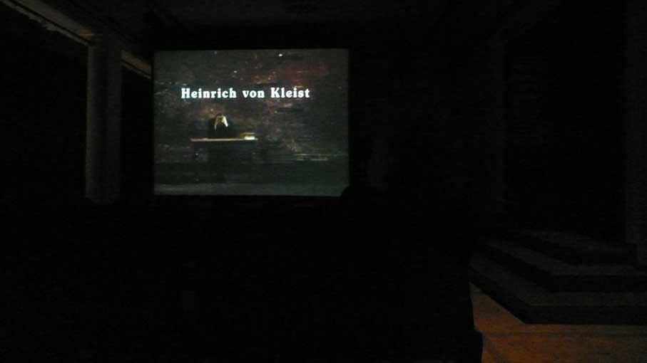 Und während drüben über der Strasse die Kleistschen Schriftgelehrten und Gesellschaften tagen und die Fakes -Kleist ist kein Biedermeierautor- seiner Werke vor vollen Sälen laufen, und auf allen Kanälen, den stinkenden des Abfalls ,rundum, wo es sich zu Hochwassern der Falschenheiten tummelt, stirbt hier ihr Held wieder seinen einsamen Tod in der einzigen Gestalt, die seiner gerecht wurde und sie sie den solitäten Tod deines Herzens Tat in sich selbst. Seiner zu gedenken, wie es ihm gebührt. Zur Gestalt und Form geworden, was er schrieb. Hochgemut beklagt.