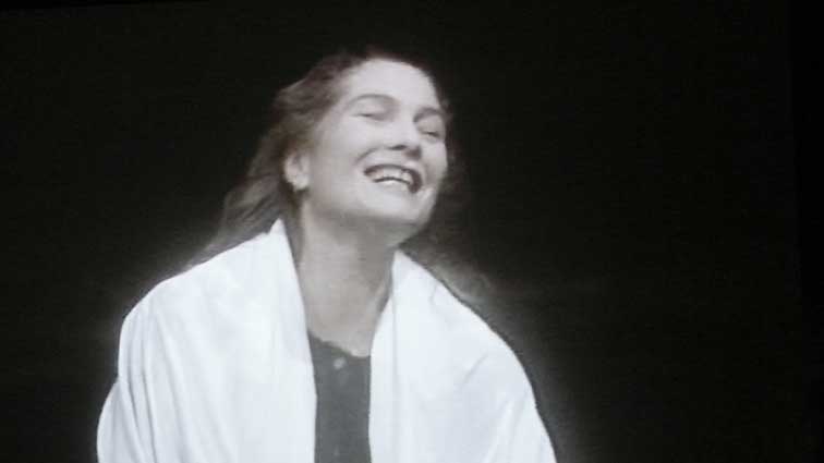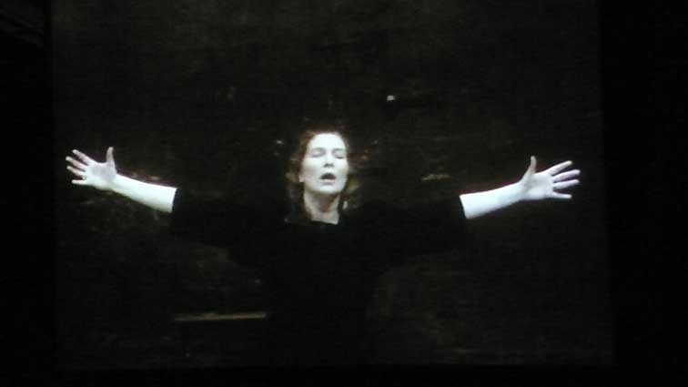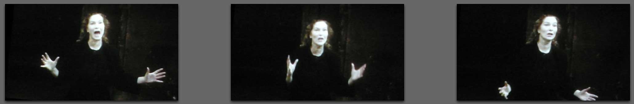 ihre Frauen, der tödlich Geliebte Archill und seine Leute, in unaufkösbarer Konvulsion klösterlicher Exaltation des Opfers, diese Höhe nicht leben zu können, aller Einsmkeiten höchster Schönheit Tugend. Der Held ist eine Frau. Und wie hier die Gedanken Form werden, Körper und Ton der Worte des Gesangs in der Unendlichkeiten Raum. Des tragisch heiteren, von einer Stufe zur anderen hinab und aus dieser tiefsten aller Tiefen hinauf ins Licht, Tür um Tür ohne Wände in Eins. Angerufen und mit Antwort jetzt..