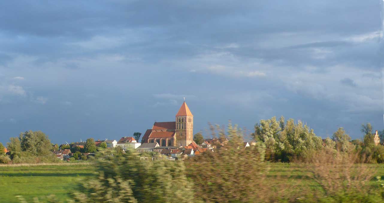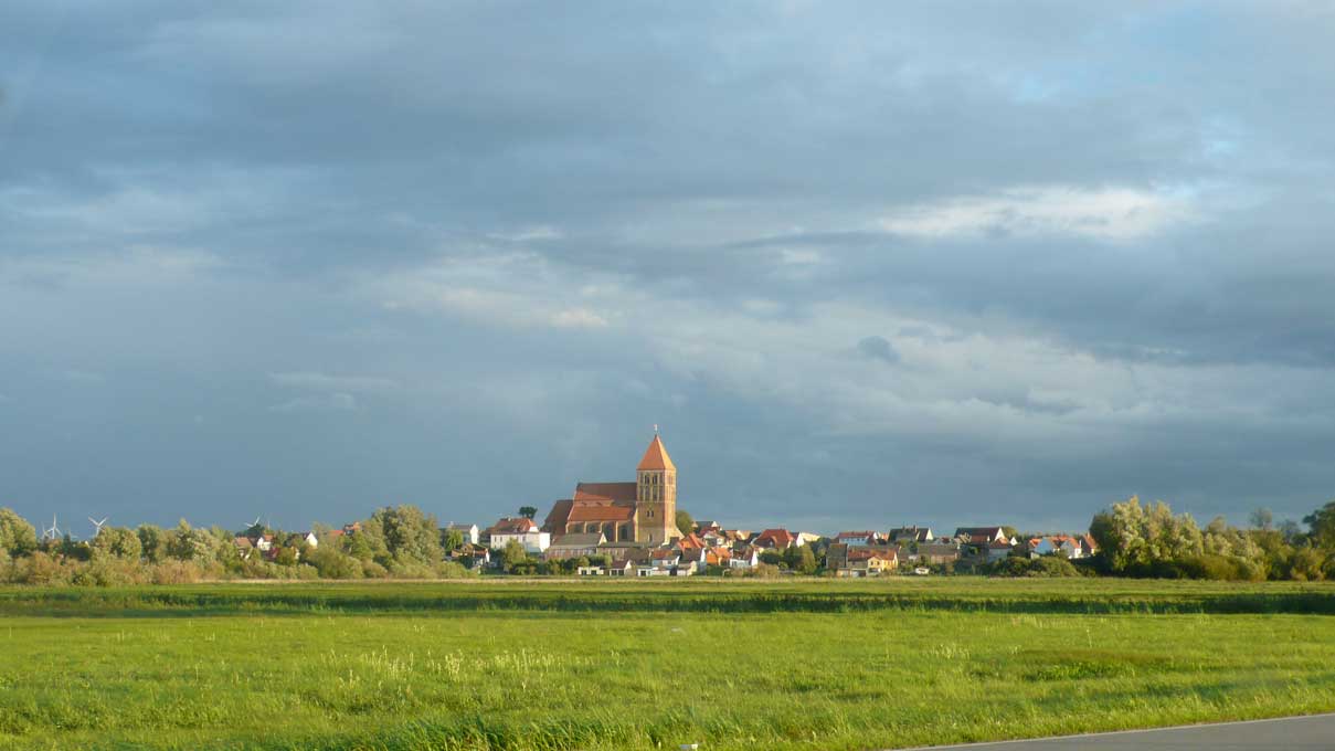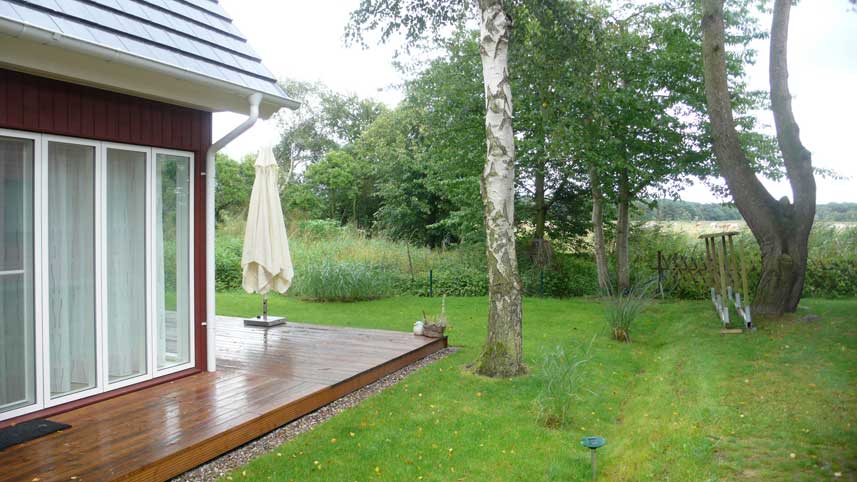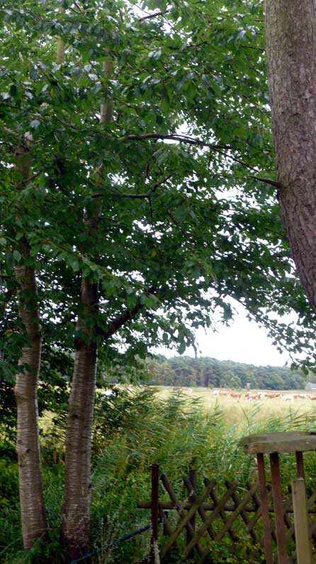 zur Landseite mit dem Blick in die Wiesen der Kühe