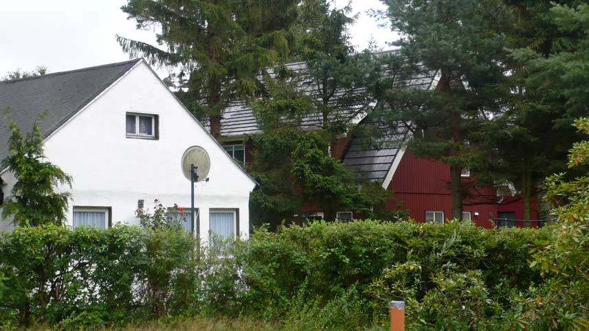 Tore ohne Zäune bei allen 25 Häusern, dazwischen kleine Gräben