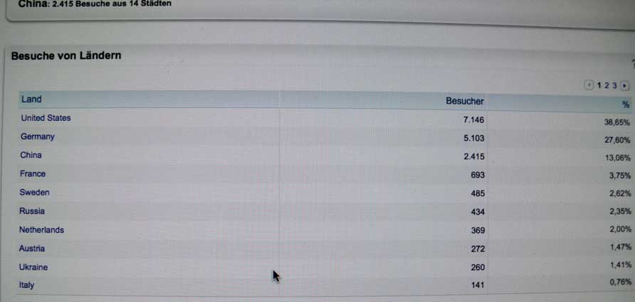 Die Besucher der letzten Tage zeigen ein besonderes Interesse am Tage der Vereinsgründung in Berlin mit über 12 000 Interessenten, und an 3. Stelle immer China jetzt, nach USA und Deutschland.