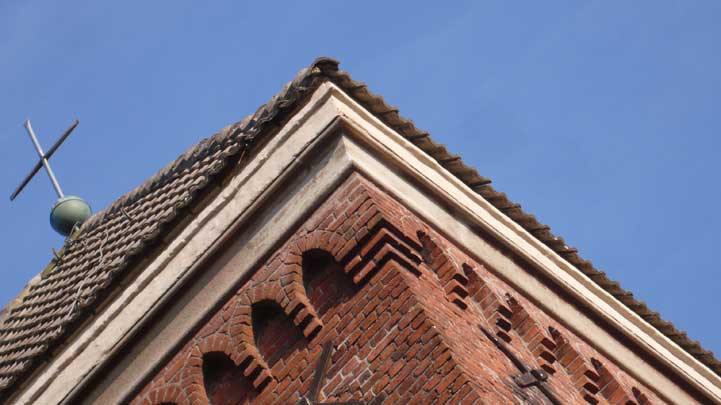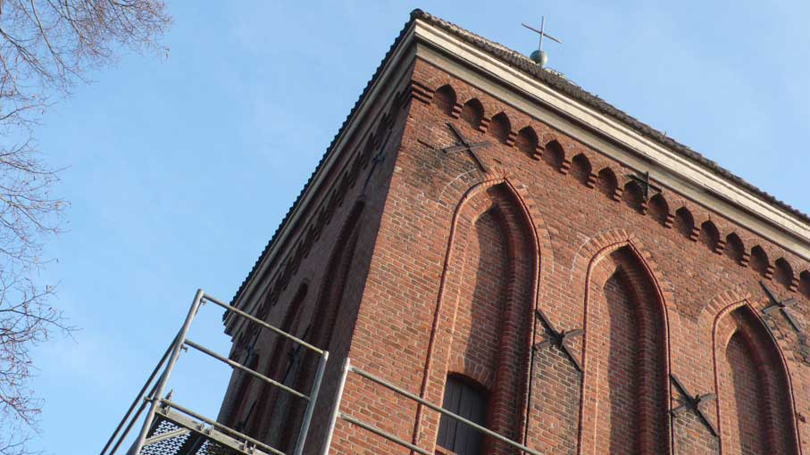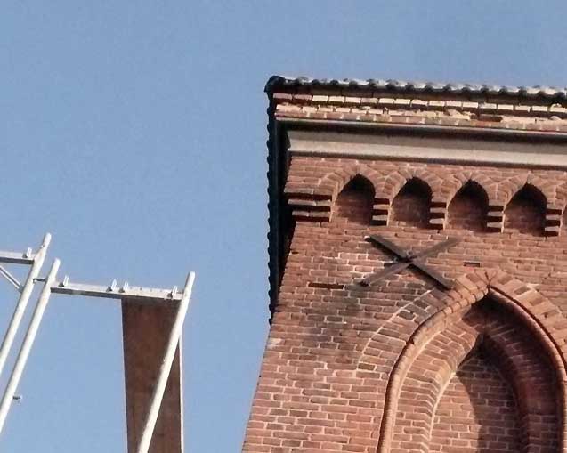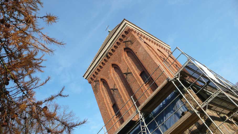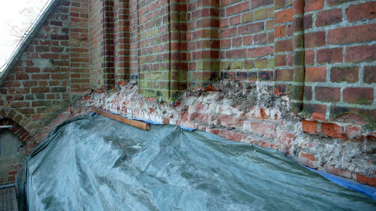 Die wunden Stellen ausschaben, ergänzen und abdecken mit Kupfer als nächster Schritt. Die Basis selbst in Ordnung bringen. Nach alter Art. Bevor wir die Spitze weithin sichtbar und sehend am kleinen Ort besorgen.