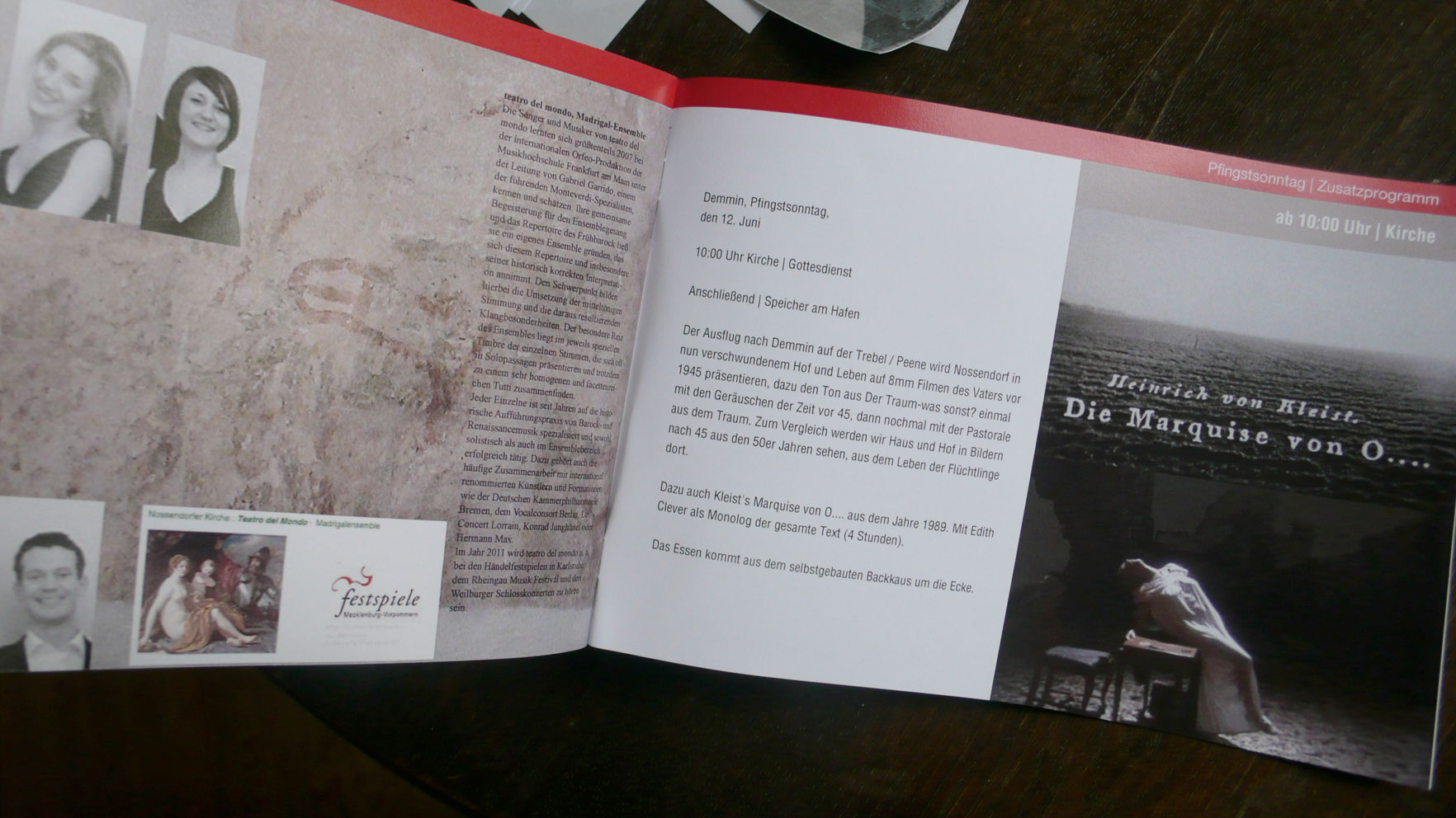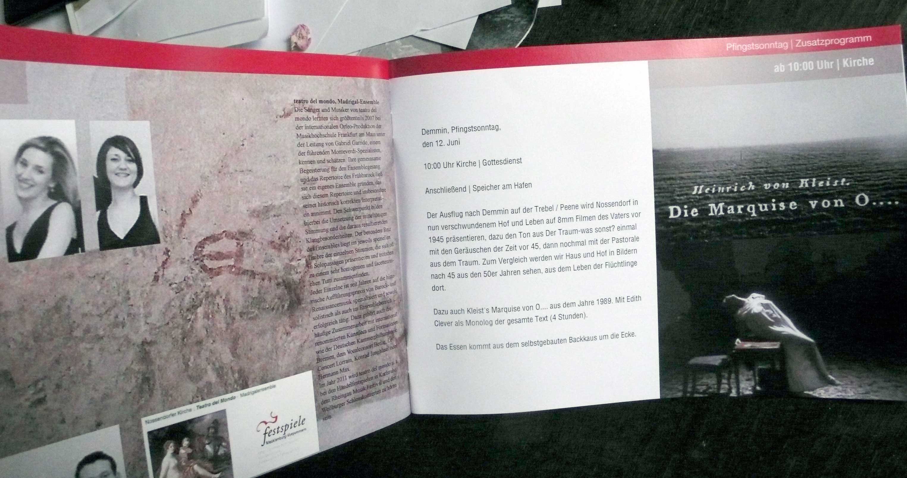 aus dem Programm-Heft der Festspiele die Ankündigung der Madrigale mit dem Hintergrunde aus der Kirche in Nossendorf und der Hinweis auf die Filme des nächsten Tages
