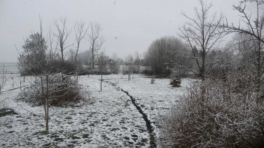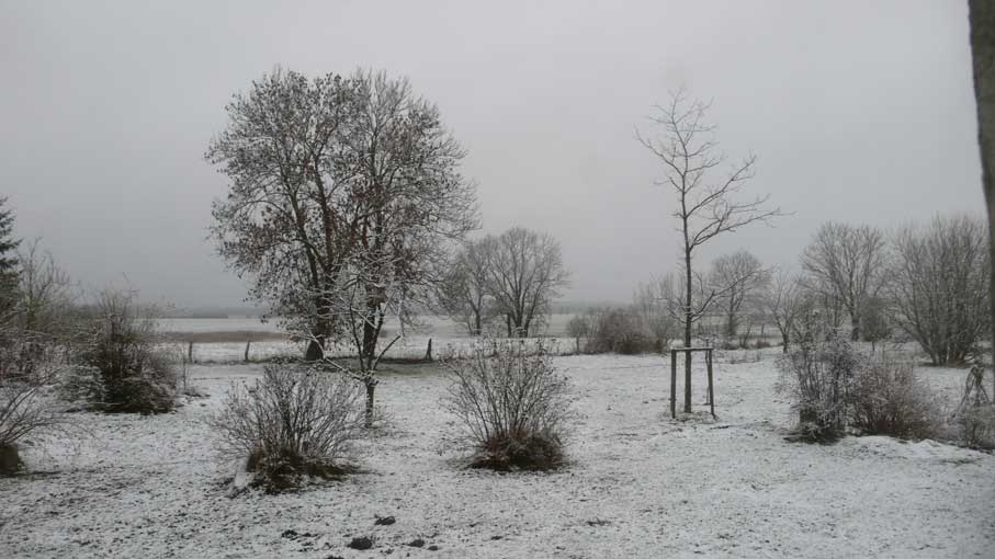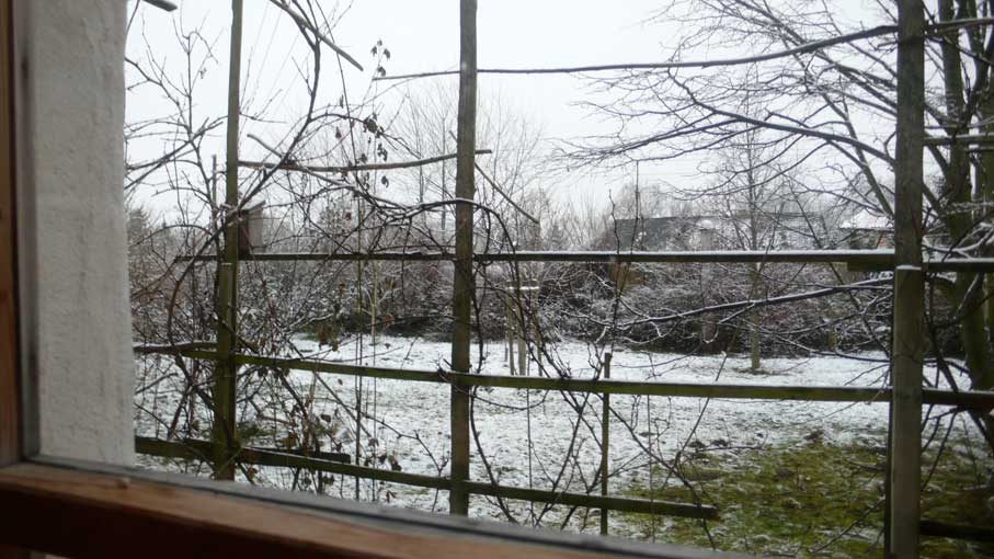 Dieser Blick wurde vom Landgericht in Neubrandenburg für die live-Kamera verboten, wegen Störung der Intimsphäre von Anwohner im Blick. Da wussten wir noch nicht, dass in einem der Häuser unter dem D dort unten der Schrank versteckt war, der nun wieder hier steht. Ich aber wollte das sehen, was anstelle des Nestes der Störche nun ist. Früher im Blick des Kindes. Ud zur Zeit der gerichts alles bloss den Augen ohne Schutz der Sträucher und Bäume, die auch verboten werden sollten bis ich schrie. Buchstäblich und verlore. Aber in der nächsten Instanz gerettet. Seitdem ist dieses Haus mit den nun verhüllten Hütten unten zu verkaufen und keiner nimmts. Dies Haus aber wurde gerettet. Nochmal. Und der Weg zur Kirche hat ein gutes Omen.