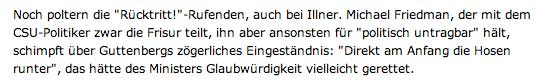 Aber eins ist auch ein Gutes an der ganzen Sache. Keulen können heute lebensbedrohlich geschwungen werden auch ohne Auschwitz im Schilde zu führen. Und sowas wie Fussnoten und Gebrauch von Zitaten in Doktor-Arbeiten(Arbeiten!)sind nun überall im Munde, wenn auch oft nur falsch verstanden. Ehre und Anstand werden wieder genannt und als des Adels Stand unserer Geschichte angerufen. Tut sie nicht enttäuschen.