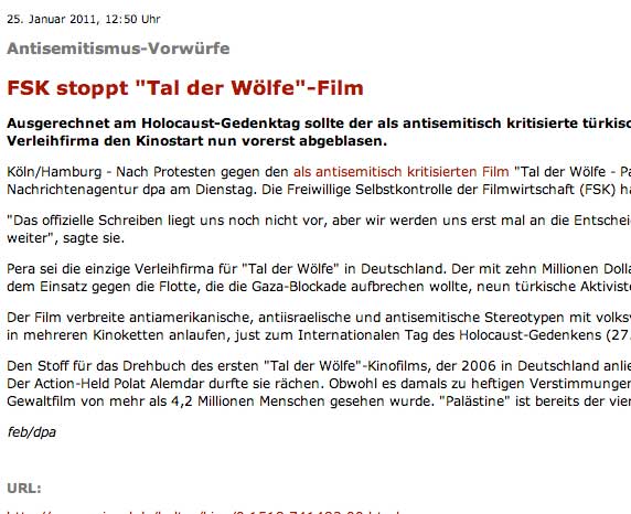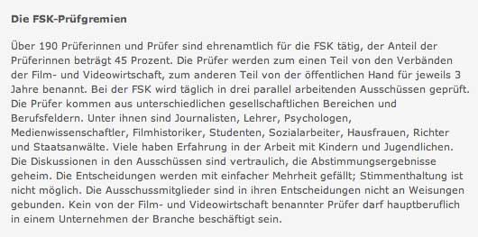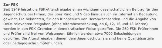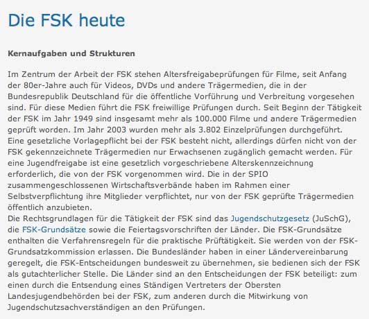 Von dem Betrieb des Theaters und der Kinowirtschaft befreit, das Oeuvre auf DVD selbst hergestellt und aus der hintersten Ecke des Landes abseits angeboten, kommen manchmal Fragen diesen oder jenen Titel doch in Geschäften anzubieten oder bei Amazon, so den Hitler-Film oder den RW/Parsifal jetzt. Das aber geht nur wenn eine FSK- Freigabe erwirkt sei und sichtbar auf der DVD in der Zahl des Alters ab wann dieser Film auf DVD eingestuft ist. Das kostet Tausende und unterstellt diese Filme einer Zensur -siehe oben-, die nicht rechtens ist, aber akzeptiert von allen des Betriebs, den sie demolratisch nennen und freiheitlich, und was nur seit den 50er Jahren untergeht, wie das Kino und FS zur Zeit. Hier haben wir wieder so einen Fall. Dieser Film oben wäre auch durch die gültigen Gesetze zu stoppen. Die Diskussion in den Zeitungen zeigt, wie das geht. Frei und mit Meinungen so und so. Der Bürger entscheidet, ob er sich das anschaut und was er denkt. Gefahr ist keine im Verzug. Wir leben im Jahre 2011 und sind in einem freien Land, wie man so sagt. Der Verleih aber unterwirft sich den Regeln dieser Filmmafia, um an sonstigen Vorteilen teilzuhaben.