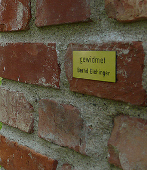 Als dies Haus dann zum Projekt wurde eines, der Filme macht, verstand er sofort, und er war der Einzige, den ich privat bat um Geld, weil ich es so wollte, und er gabs für die Darstellung von allem -Film und Haus der Geburt- in Paris als erste Aktion von hier 2003. So kam es zu dem Pfeiler, den ich ihm als Denkmal versprach mit seinem Namen. Nun schon so schnell zur Erinnerung an einen Freund, im Film.