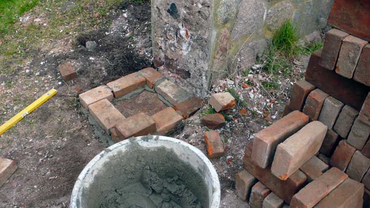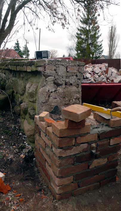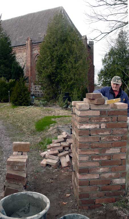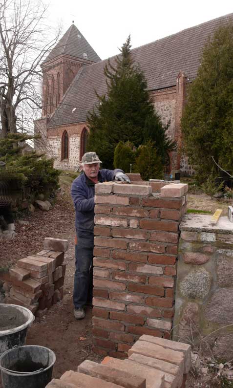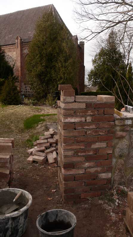 so wächst zusammen, was zusammen gehört. Feldstein und Backstein, nach alter Art.