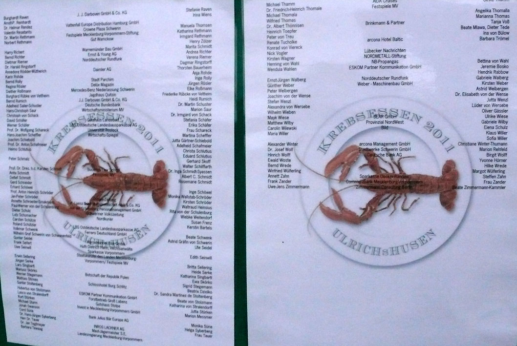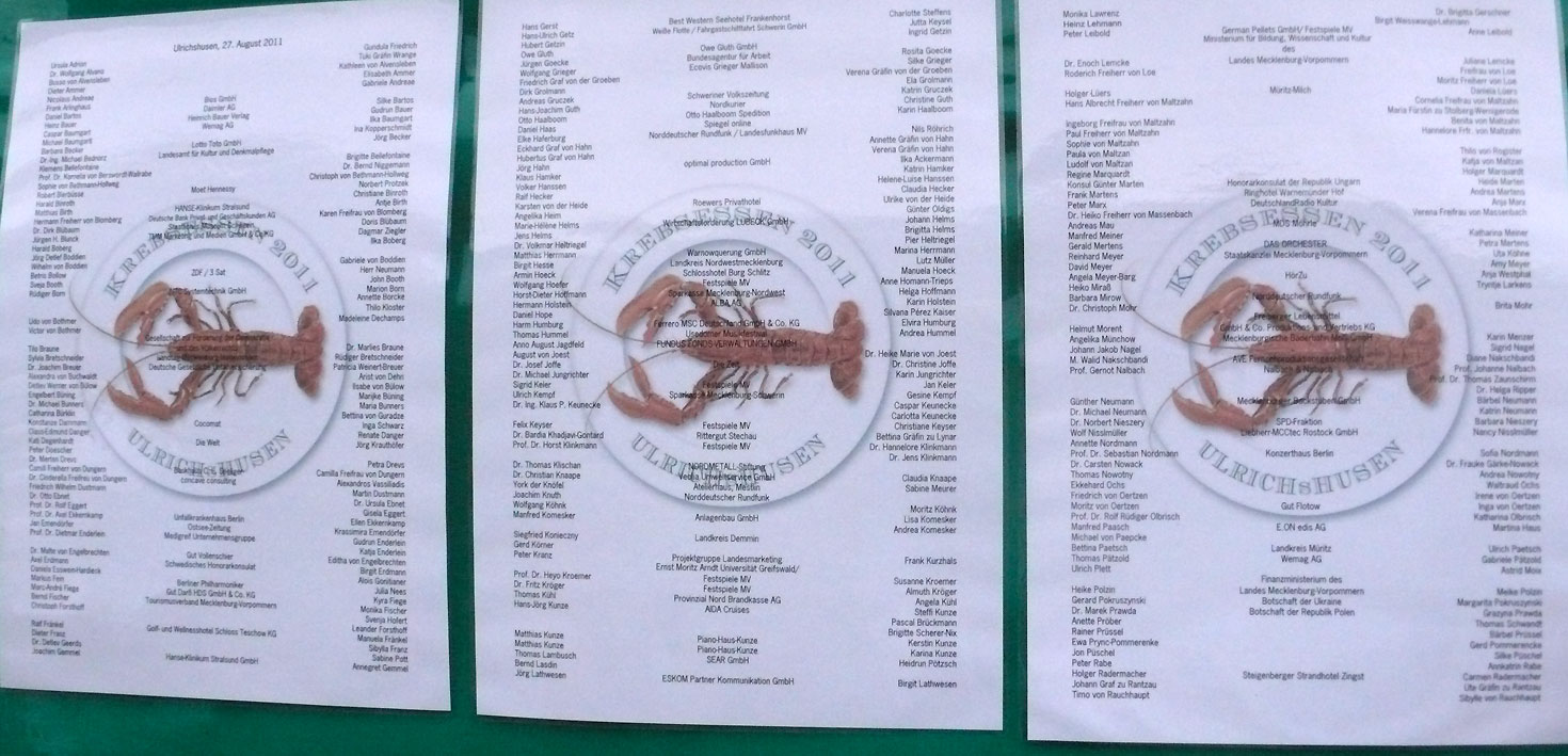 aus Ulrichhusen Abschieds Konzert von der diesjährigen Saison Festspiele M/V. Das Krebsessen mit den Sponsoren und Freunden. Nossendorf Box übergeben an Mathias von Hülsen. (Festspiele in N Pfingsten 2011 5 DVDs)