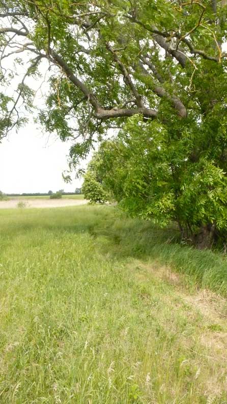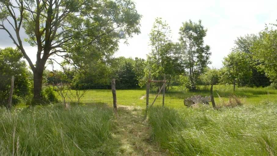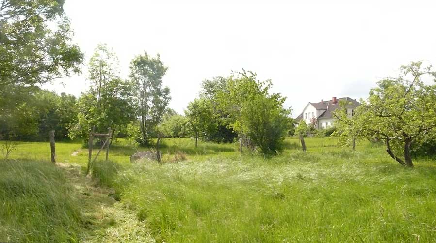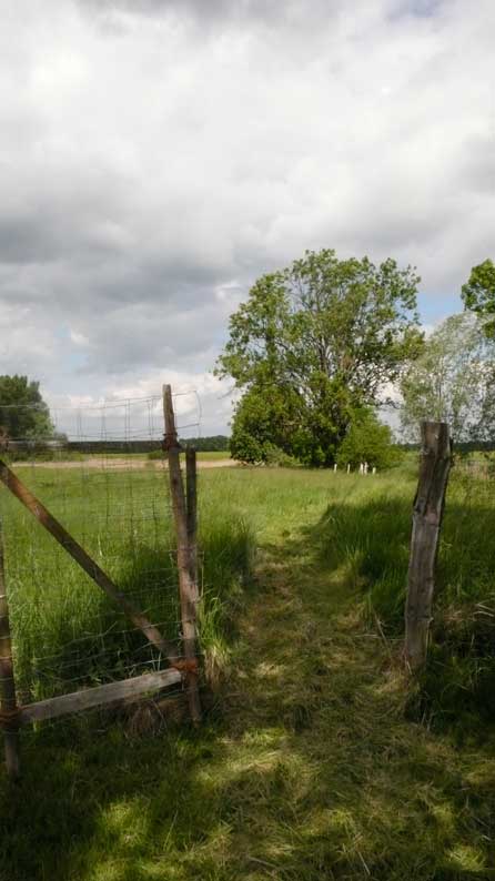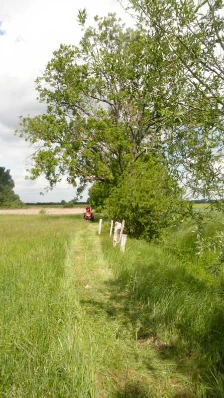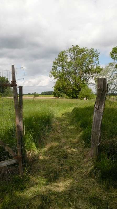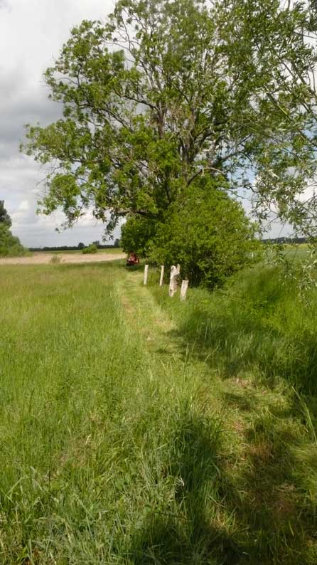 gehen wie zum ersten Mal durch Wiesen und bekannte Koppeln, aber nun auf durchgeschlagener Schneise am Bach