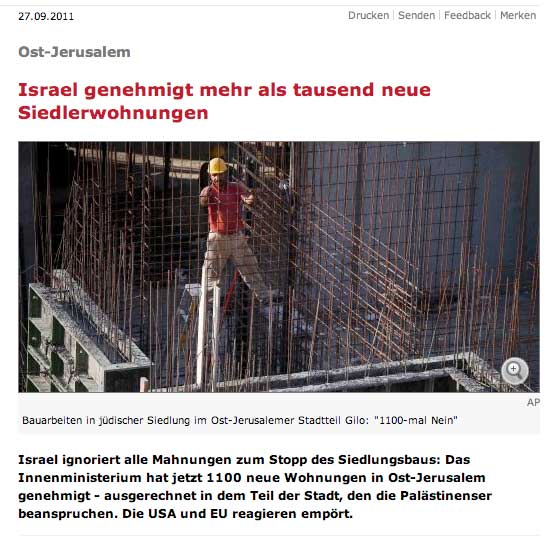 Dabei bestŠtigt ein Expertenbericht fŸr den Uno-Menschenrechtsrat genau das: Die israelische Regierung habe seit Jahresbeginn verstŠrkt Hauszerstšrungen angeordnet. Seit Januar sind demnach 387 GebŠude zerstšrt worden, darunter 140 WohnhŠuser. Dies habe zur Vertreibung von 755 PalŠstinensern gefŸhrt, hei§t es in dem Bericht. Allein im ersten Halbjahr 2011 seien mehr PalŠstinenser vertrieben worden als im gesamten Vorjahr.