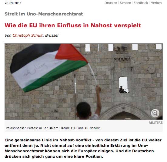 Der Einfluss der EU auf die Konfliktparteien im Nahen Osten tendiert damit gen Null. Denn der Vorgang im Uno-Menschenrechtsrat beweist: Israelis oder PalŠstinenser mŸssen nur eines von 27 LŠndern herauslšsen, um eine gemeinsame europŠische Nahostpolitik zu verhindern.