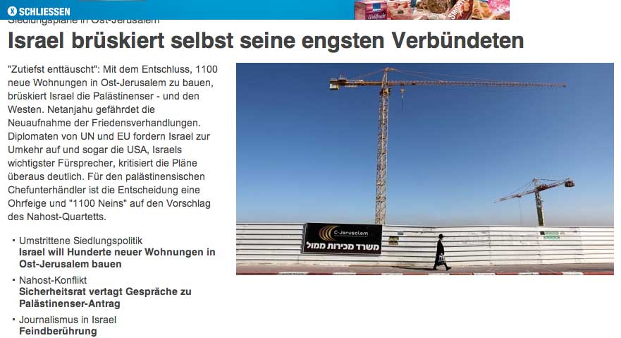 Weißes Haus tief enttäuscht über Israels Baupläne