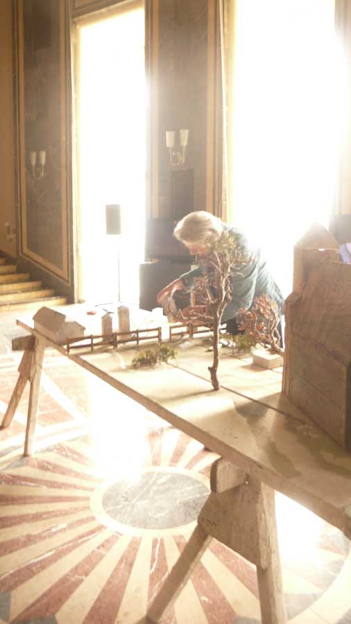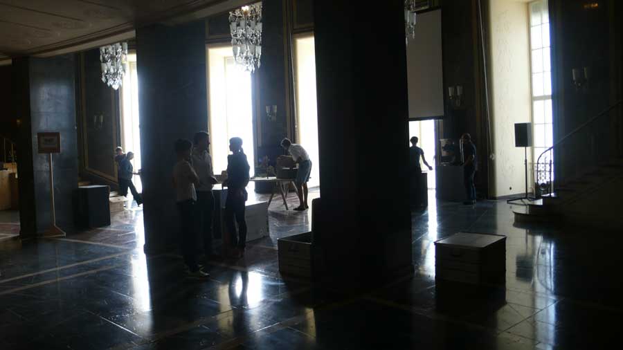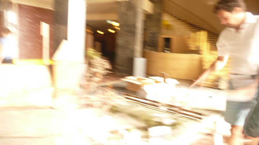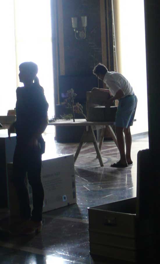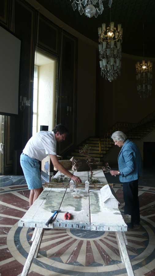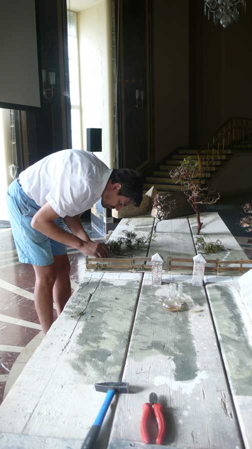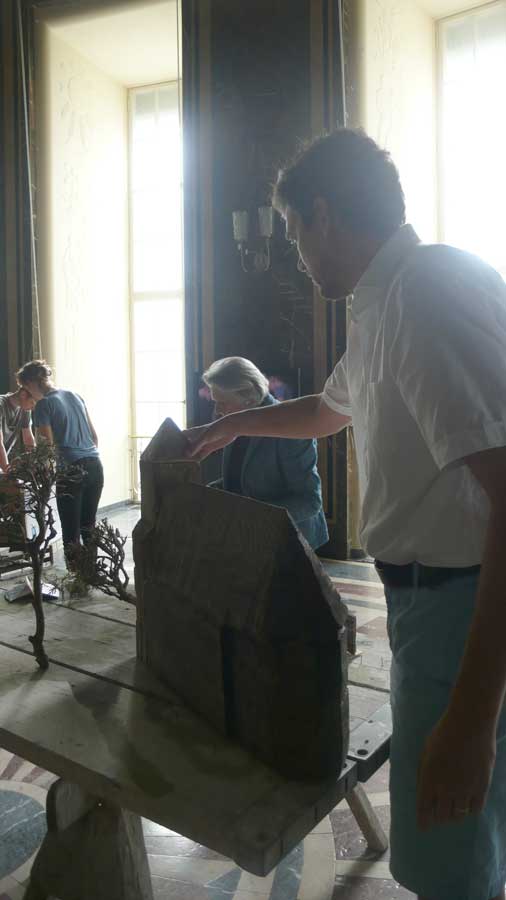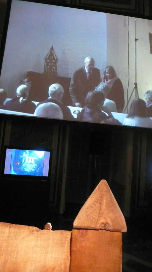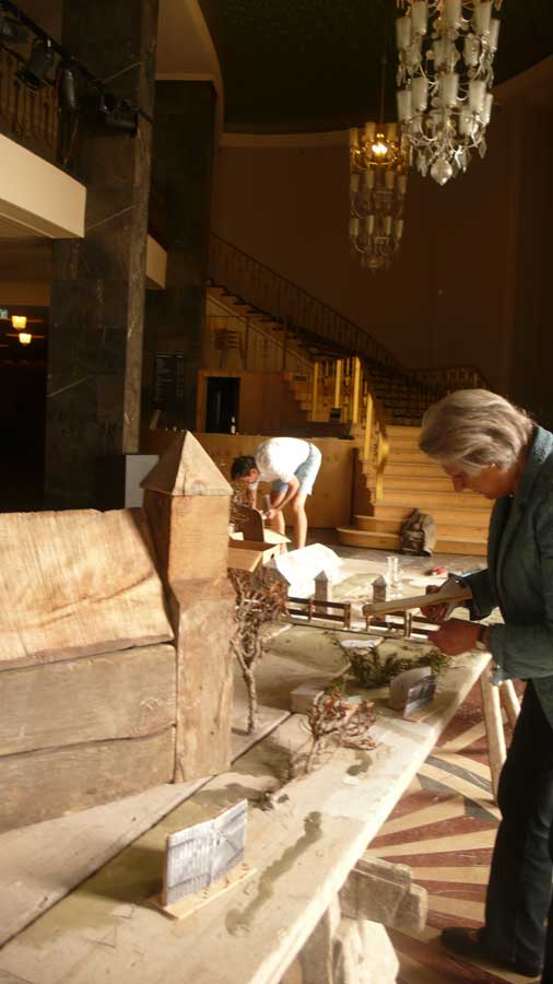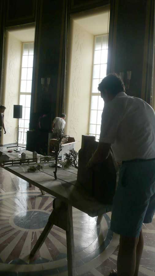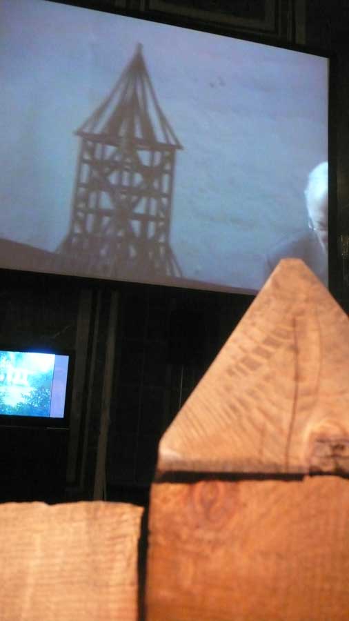 Aufbau der Puppen und der 10 Projektionen für einen Raum an einem Tag von abends (18 Uhr) bis Mitternacht. Zur berichten von hier und sonst nichts von einem Tag im Sommer dieses Jahres. Und einem freien Weg zu dem Turm, der bald wieder stehen soll.