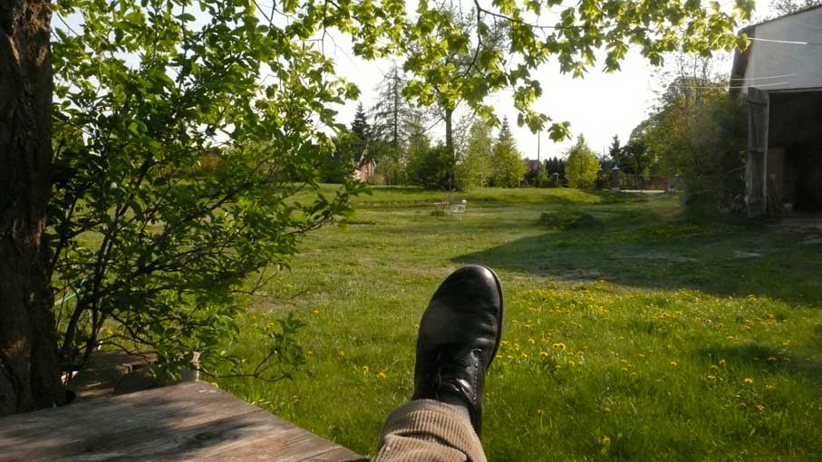 Aber doch, aus den bisherigen Taten, erkennen wir ein Prinzip und das heisst Wege weg, Anbindung jedes als Eigenheim deklarierten Restsanierten Dämmungs-Gebildes von Haus, das die Notdurf der LPG-Zeit überstand an die Autosrassen ins Weite, Kirchen ohne Platz und Ziel im Dorf. Das Dorf der Güter, in der Folge der DDR, wurde eine gewinneinbringende Abrisshalde, am Rande die mühsam erhaltenen Plattenbauten. Die Teiche mit hohen Zäunen vom Leben abggeschnürt. Ein Slum entsteht als Flucht-Ort der Schlafenden mit schneller Autoanbindung Abziehende ohne Arbeit, die Alten verkriechen sich in betreutes Wohnen irgendwo, aber nicht hier. Wer will hier alt werden. Ohne Bäcker, Kaufladen/Konsum, die Schmiede und Sattler oder Stellmacher, Schlachter sind längst ausgestorben. Die DDR- Abrisshalde wurde zum autogerechten Dorf der billig-Konsumenten-Demokratie ist an der Basis aller Dinge angekommen. Jeder nimmt sich was er kriegt. Die König der Preussen übergab die Liegenschaften des Landes an seinen Vasallen früher für Dienste am Hof oder in der Kriegen, aber dann mit der Auflage Leben zu garantieren und das war die Kultur in Höfen und Häusern, wo heute noch von Zeit zu Zeit des Sommers Feste der Musik aller Länder und Zeiten stattfinden. Wie ein Fata morgana des Lebens noch mal. Misstrauisch beobachtet von den Hiesigen, freudig angenommen von denen, die noch leben von weiter kommend und froh, wieder zu gehen.