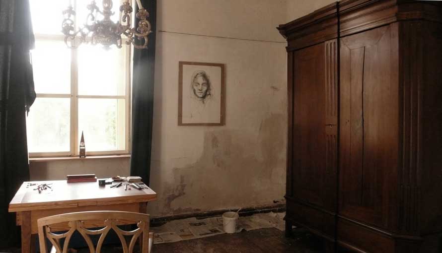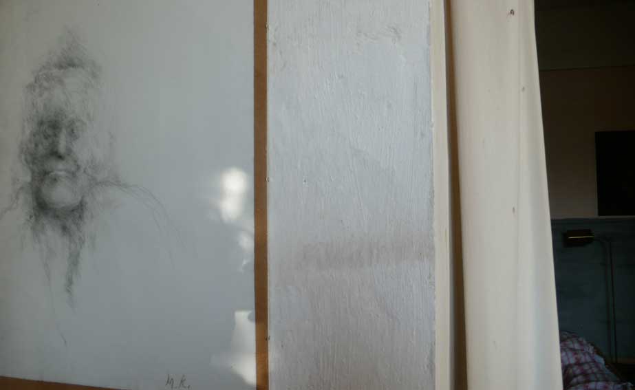 Diese ersten und letzten Zeichnungen von MK. hängen heute gut neben der Strenge des Schrankes. Noch müssen die Wände in Ordnung gebraucht werden.>>>
