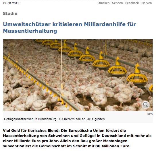 Nebenan hier im Land der Musikfeste errichten sie die grössten Mastfabriken Europas.