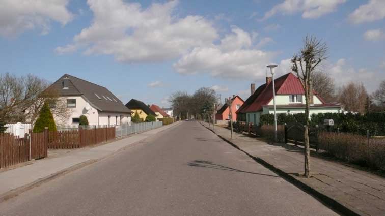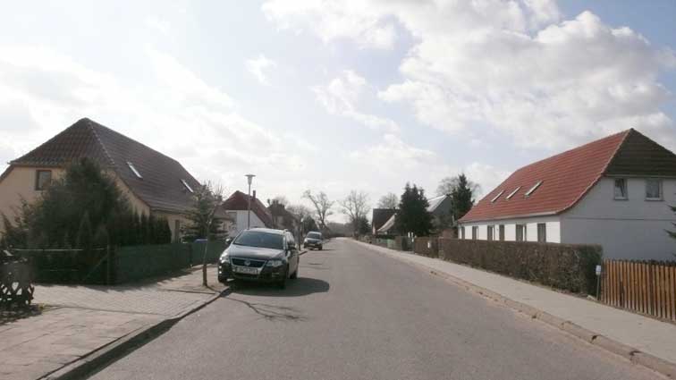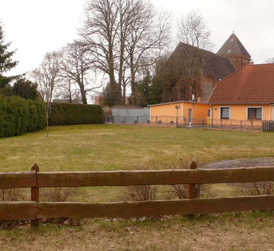Nossendorf, der Weg zur Kirche in zwei Abschnitten(A und B)