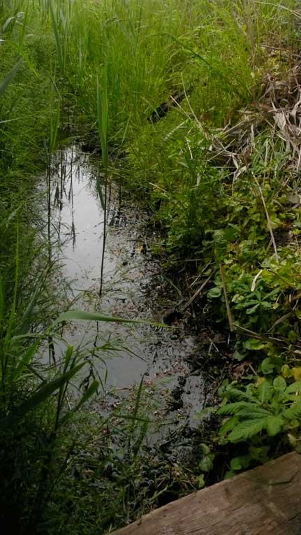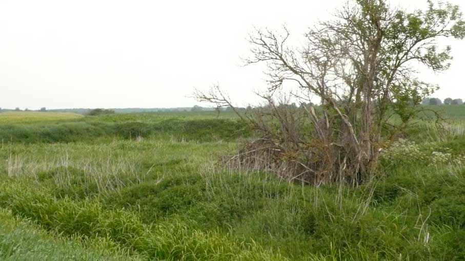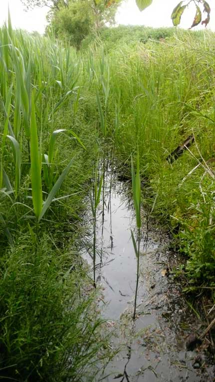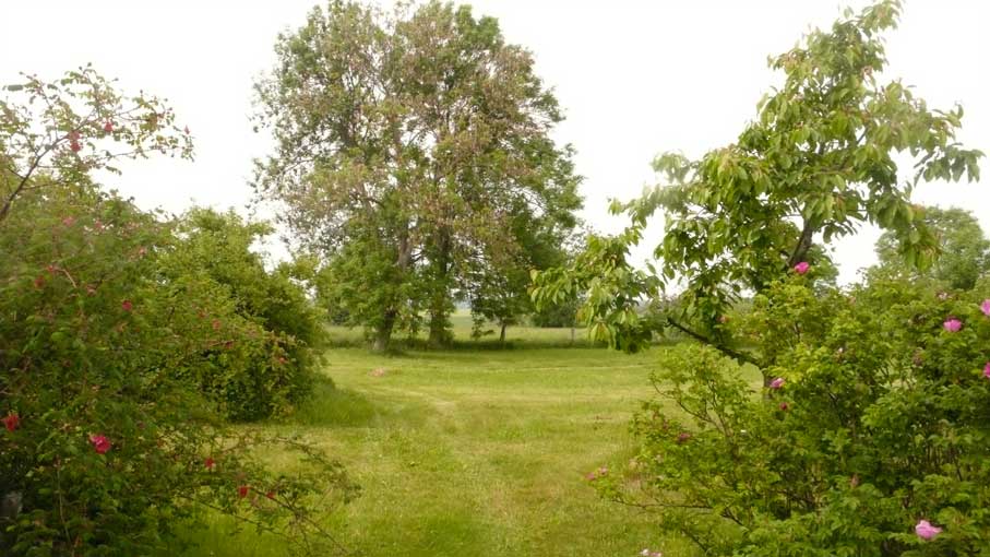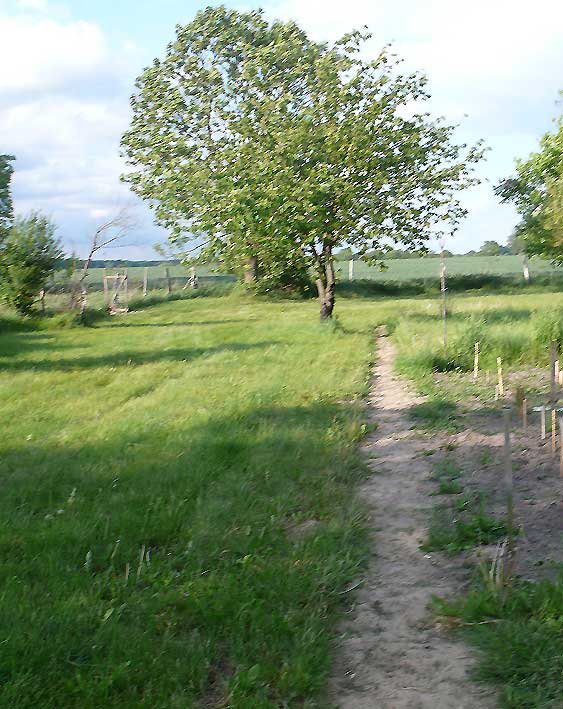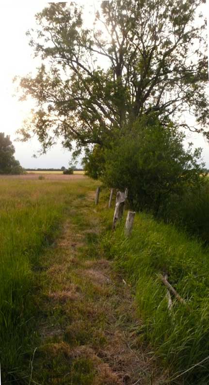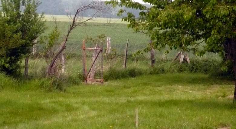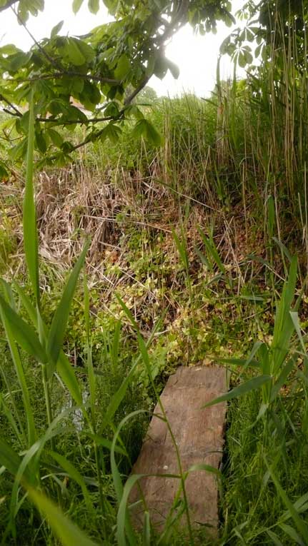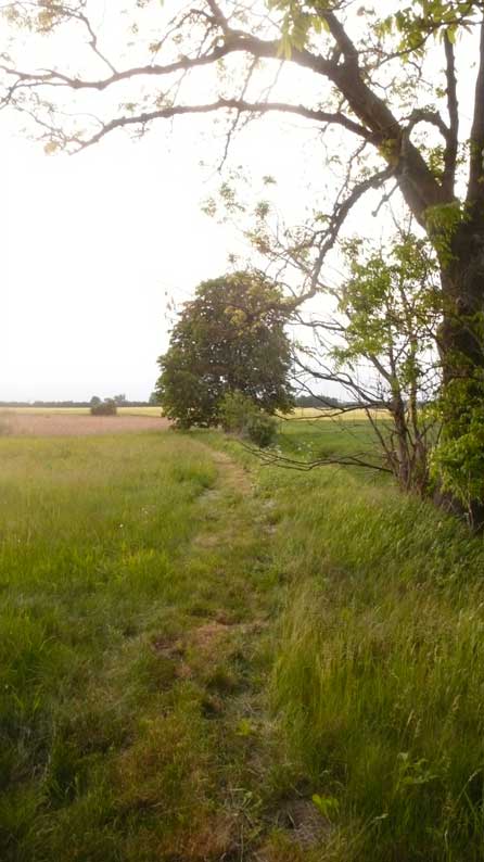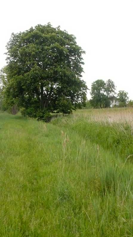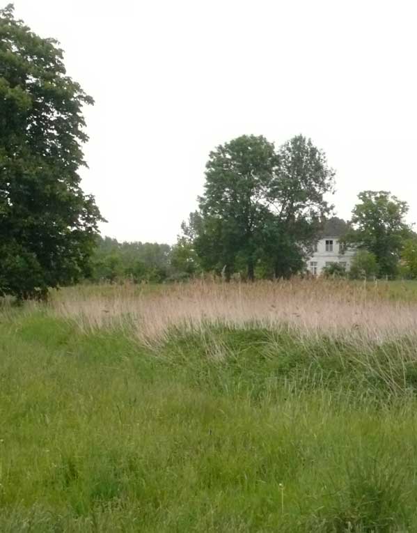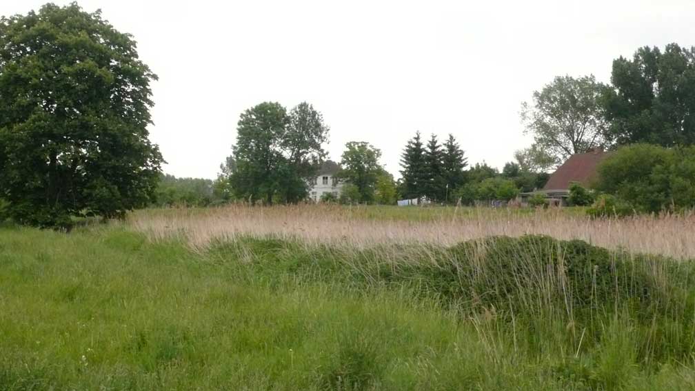 das war zwar immer schon so, mühsam zu überqueren der Graben und mit Umwegen durchs hohe Gras der Koppeln vorne, kein Weg also, und schon gar nicht alltäglich möglich, ohne Klettern und besondere Kleidung.