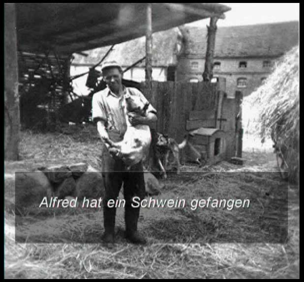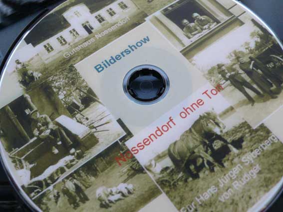eine DVD aus Bochold an der holländischen Grenze von B.undR.Wallow mit Fotos aus Nossendorf nach 1947, nach uns. Ein Dokument des Lebens, auch der Kindheit danach. Über den Hof noch die Scheune -heute LPG-Halle und der Pferdestall. Vorne in den Hof gebaut anstelle des Kuhstalls die Hütte, 2000 Garagen.