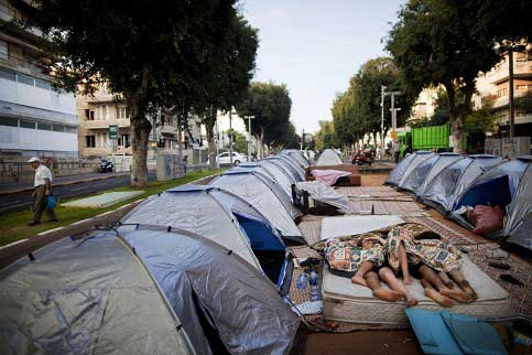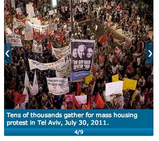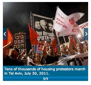 In Tel Aviv, an estimated 100,000 protesters marched from Habima Square to the Tel Aviv Museum. ÒWe are happy to see the people of Israel taking to the streets, each in their own city, each with their own troubles, but many troubles that are common to all of us,Ó said one of the organizers, Yonatan Levy.