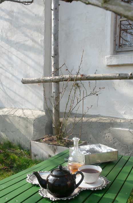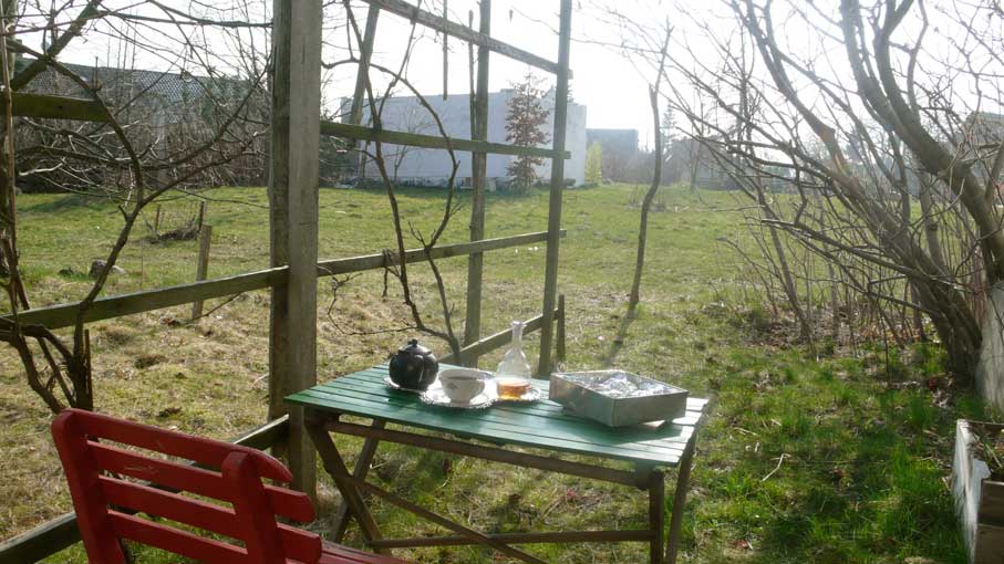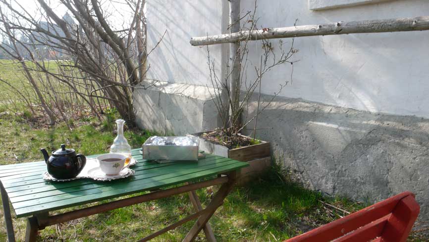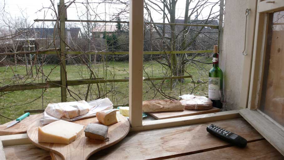wo früher böse Blicke und Worte und zugemauerte Fenster waren, ist wieder Leben selbst in Zeiten ohne Laub. Jetzt krähen am Morgen von düben die Hähne und die Hennen melden wenn sie ein Ei gelegt. Und der andere brummt von: kein Foto, das bringt Unglück, auf dem Friedhof, wo alle gleich sind. Aber der Schrank ist jetzt bei mir.