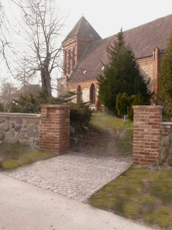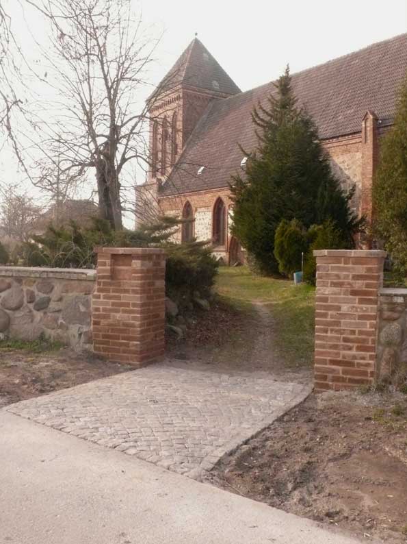 auf dem erzwungenen Weg auf der Betonstrassezur Kirche die Einfahrten zur Seite