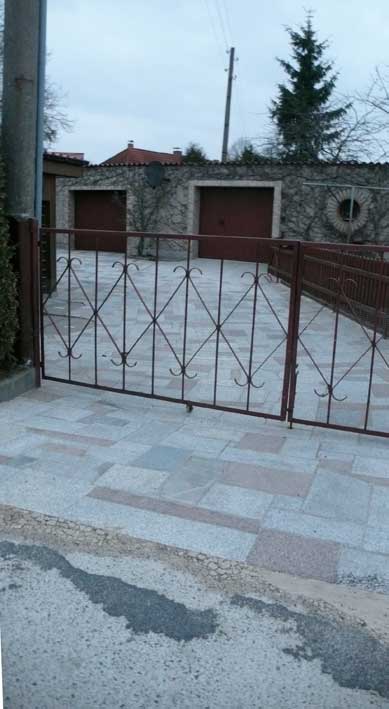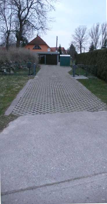 angekommen wieder zuhaus, vorne unten das erzwungene Pflaster das der Bürgermeister und der Gemeinderat in geglätteter Form so wollten, wie gefliest.