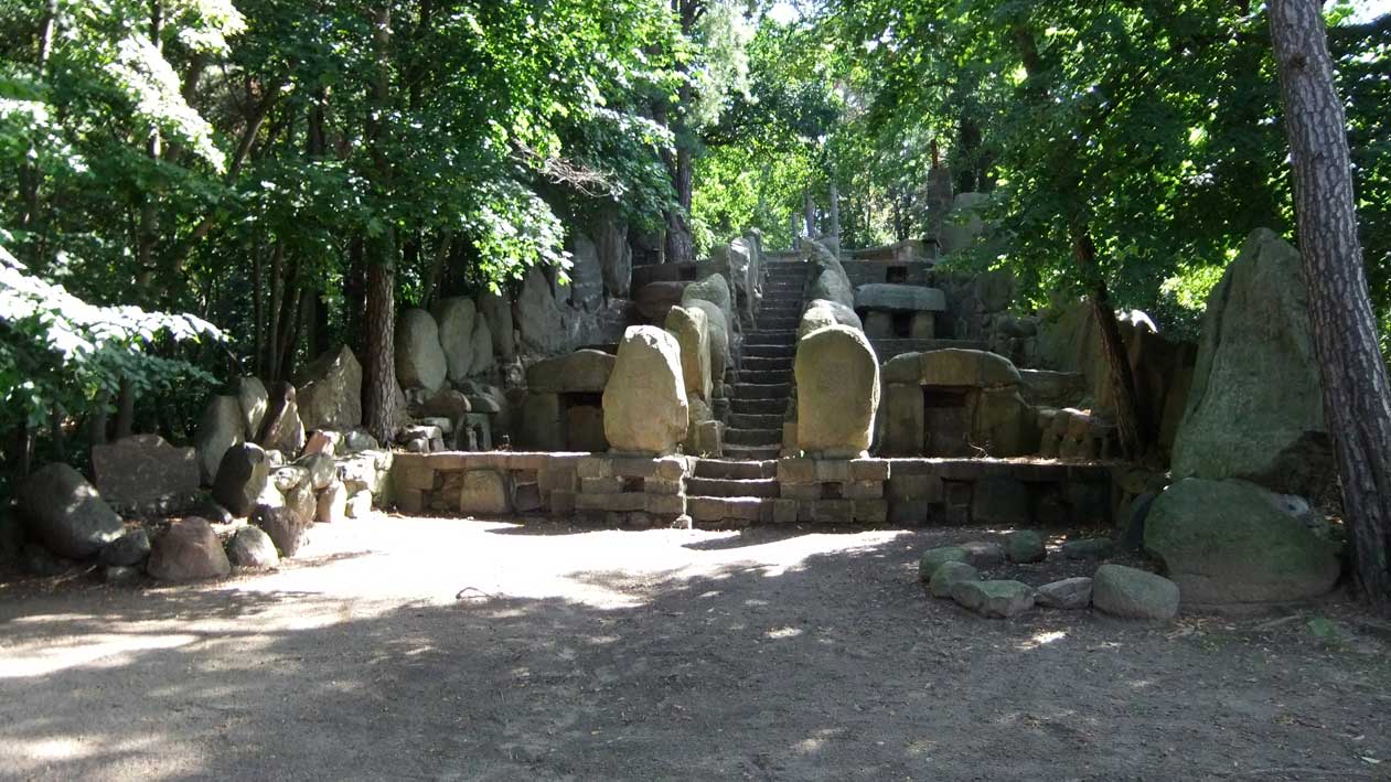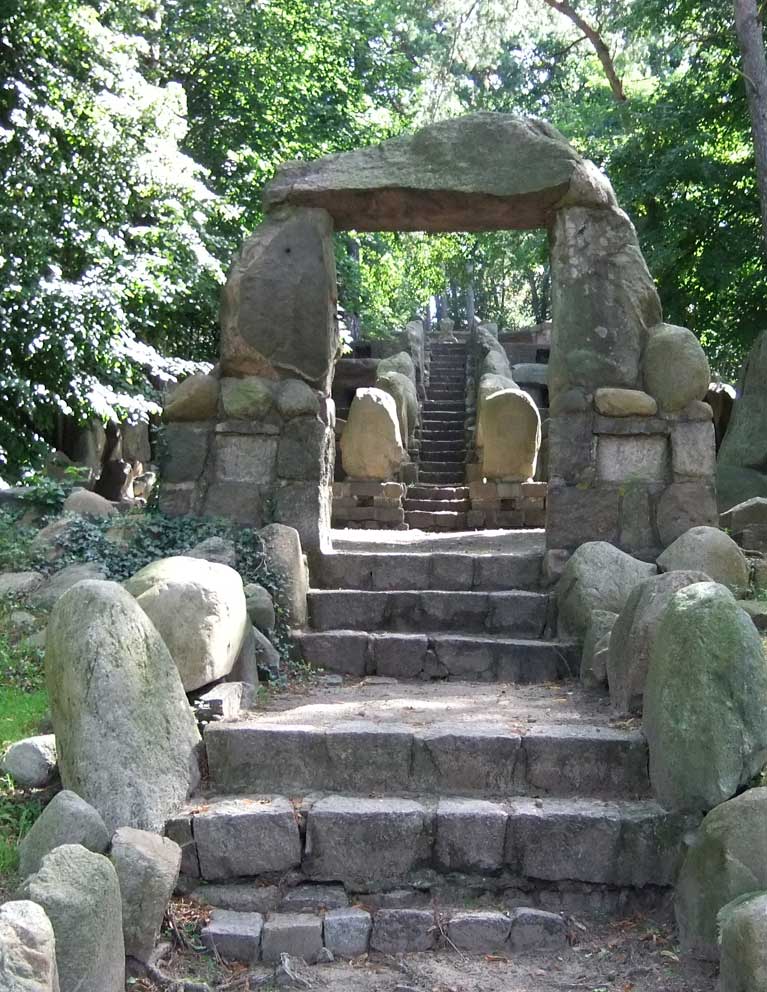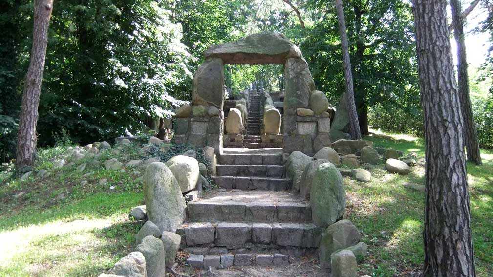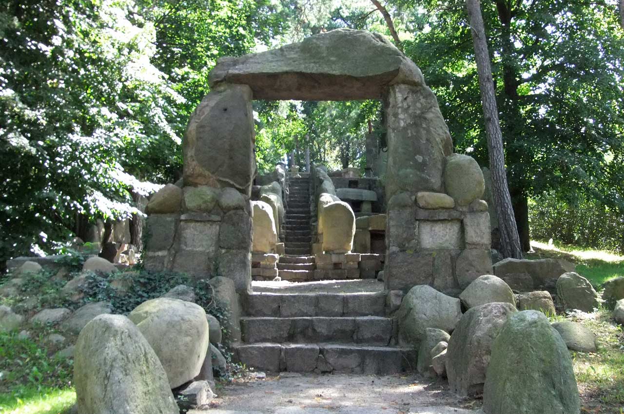 >> in Demmin<<<, nach dem ersten Weltkrieg in den 20er Jahren, im Still der Zeit aus Steinen der Hühengräber errichtet, nach 1945 zerstört, nachdem Fall der Mauer wieder hergestellt, soweit vorhanden,