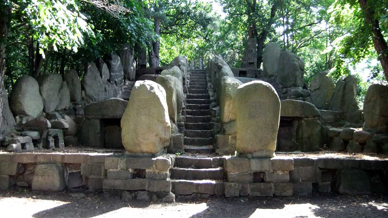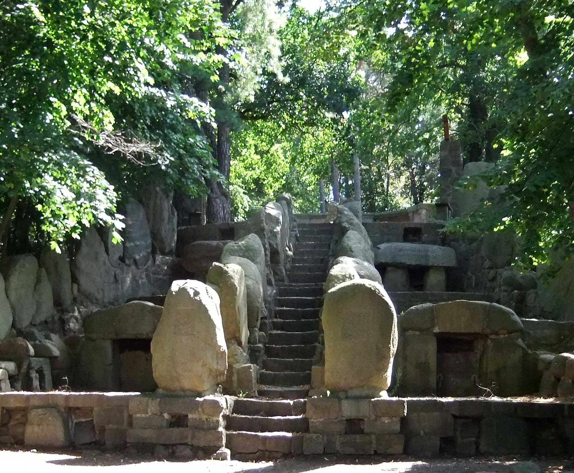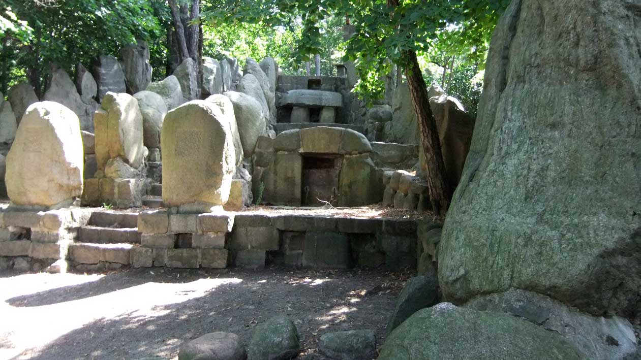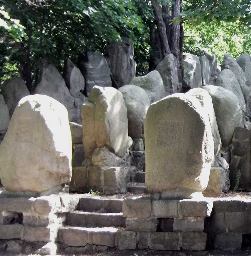 >> in Demmin<<<, nach dem ersten Weltkrieg in den 20er Jahren, im Still der Zeit aus Steinen der Hühengräber errichtet, nach 1945 zerstört, nachdem Fall der Mauer wieder hergestellt, soweit vorhanden,