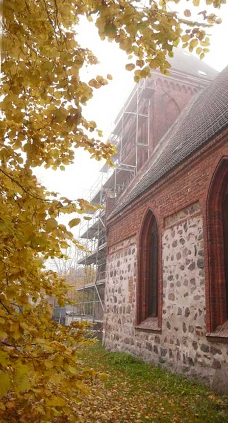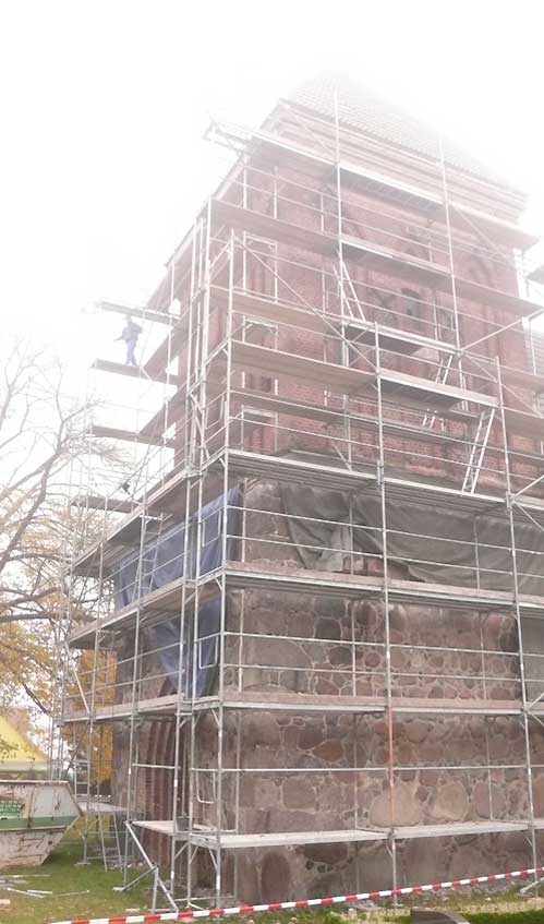 Immer mehr aber wird der Turm der Kirche hier zur Basis seiner Spitze, wie sie darauf gehört....
