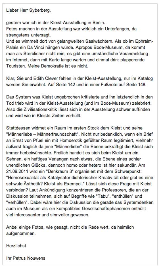 eigentlich wollte ich Sie mit meinen Eindrücken von besagter "Kleist"- Ausstellung verschonen...