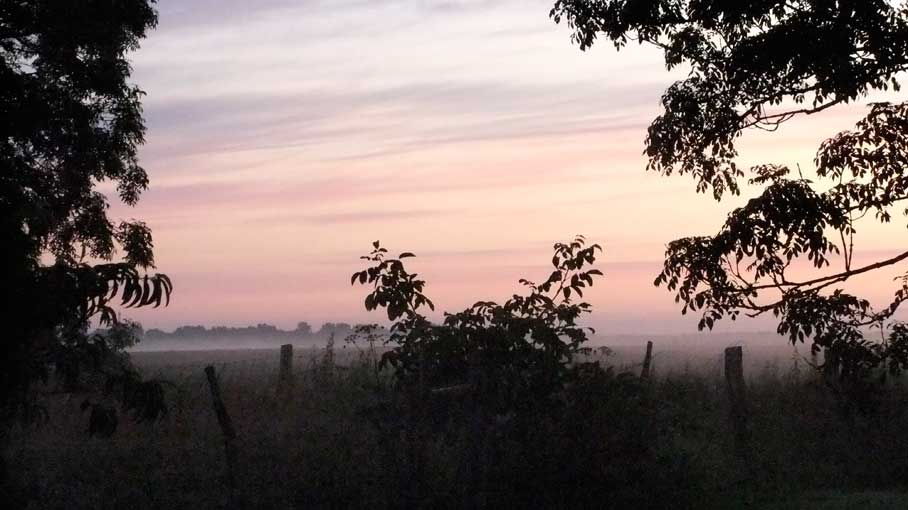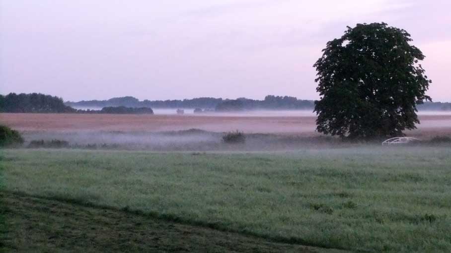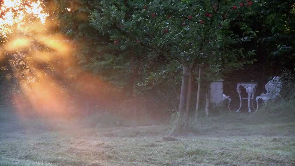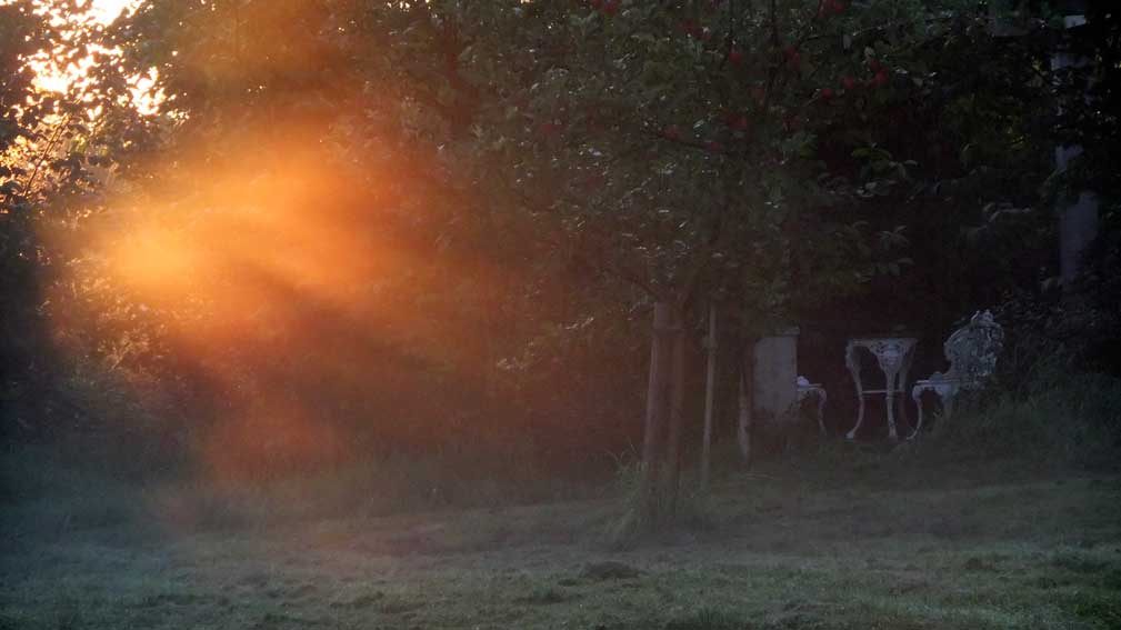 Nebel, erste Sonnenstrahlen, Fruehstueck,