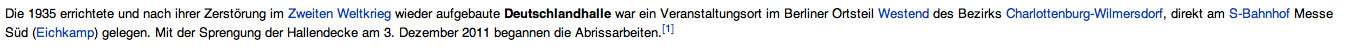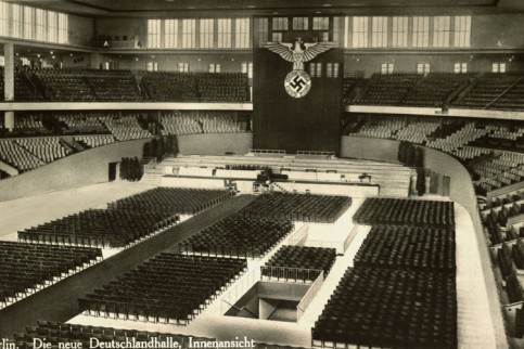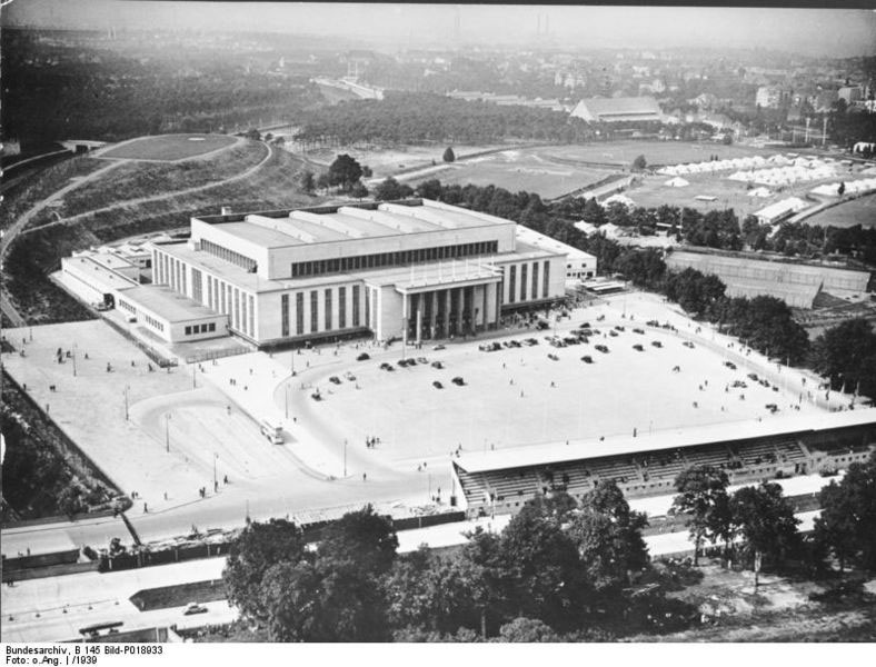 Der Bau war am 29. November 1935 nach neun Monaten Bauzeit von Adolf Hitler eröffnet worden. Mit einem Rad-Mannschaftsrennen feierte die Halle am 7. Dezember 1935 ihre Sportpremiere. Die Nazis nutzten sie in der Folge für ihre Massenveranstaltungen. Zu den Olympischen Spielen 1936 galt die Deutschlandhalle mit 10.000 Zuschauerplätzen als größte Mehrzweckhalle der Welt.