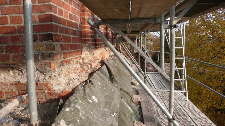 Der Ausflug auf die verschiedenen Etagen des Turmsockels lässt uns erkennen, um was es geht, wenn hier repariert wird.