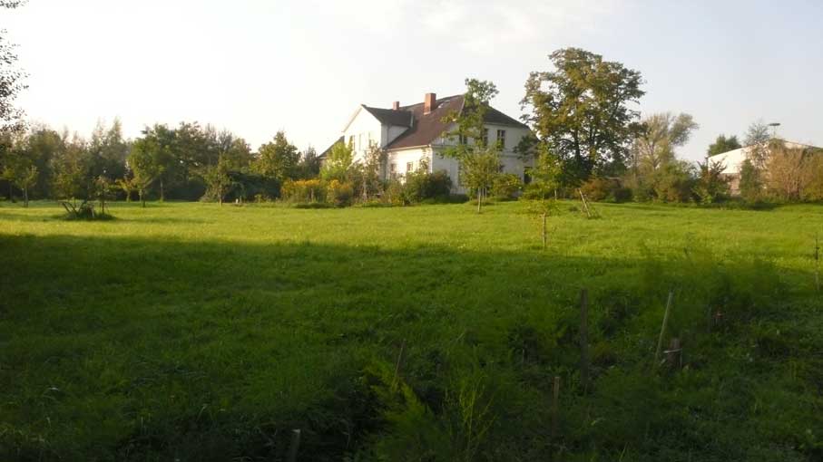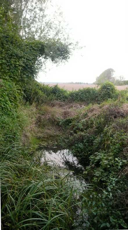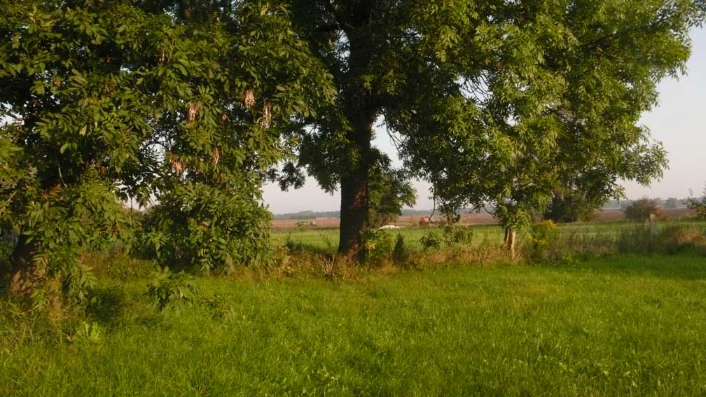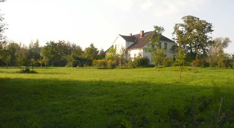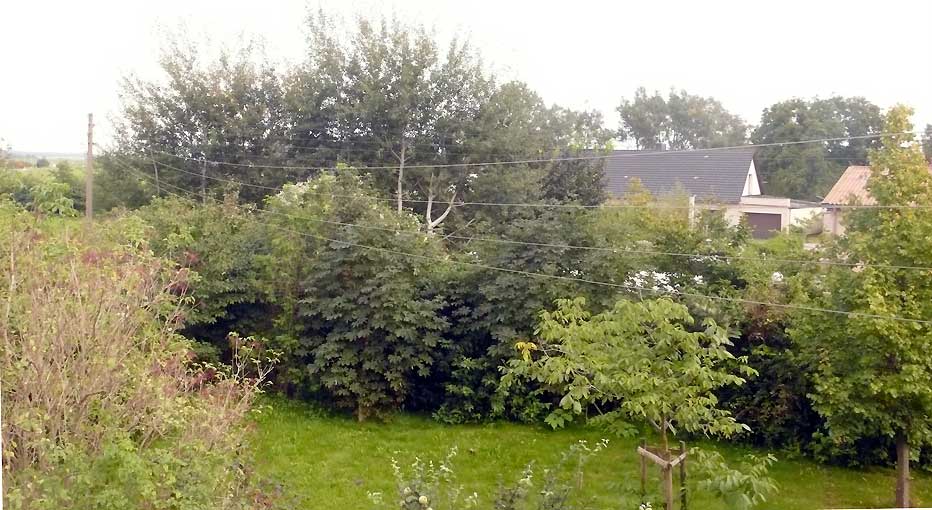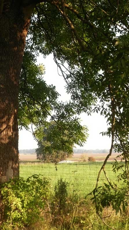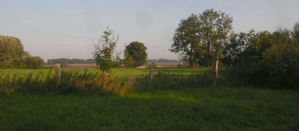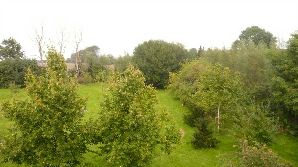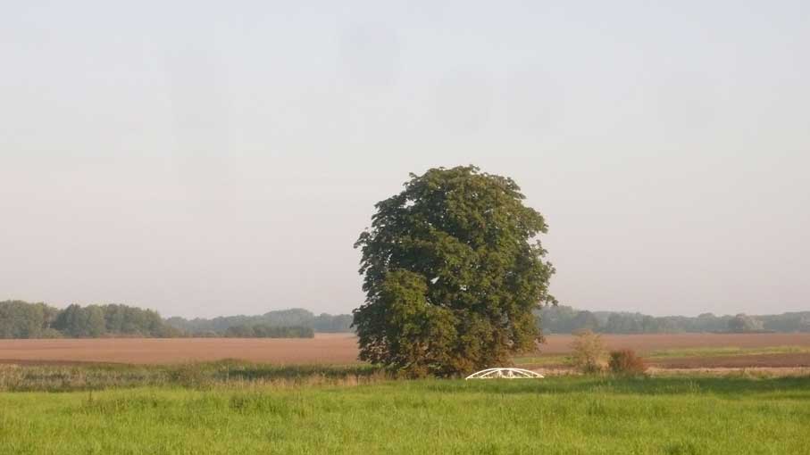 hinter den Eschen die Brücke, wo es in die Felder der anderen führt an und in die Wald.