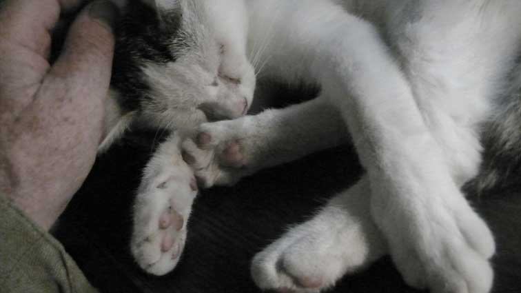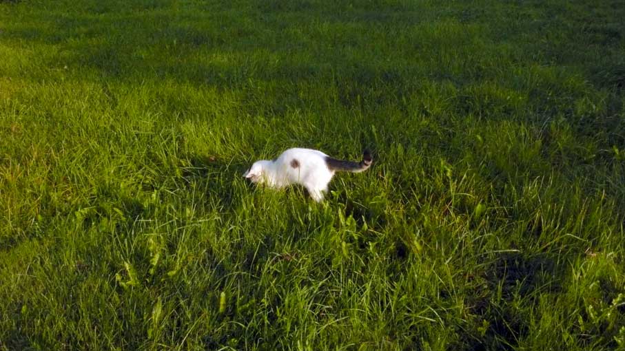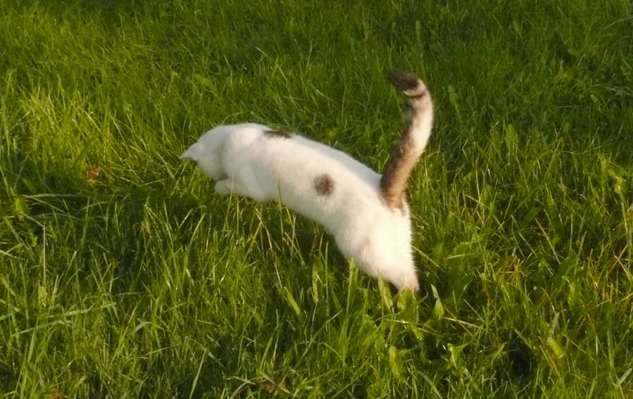 und dann ist er da, die ganze Nacht weg, und wieder - ein Frosch, gestern die Maus.