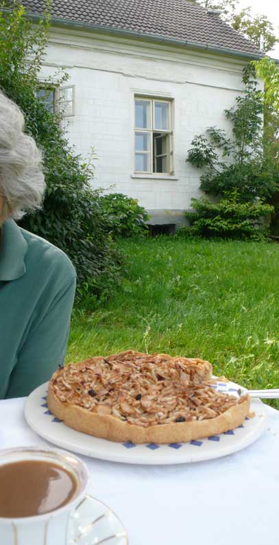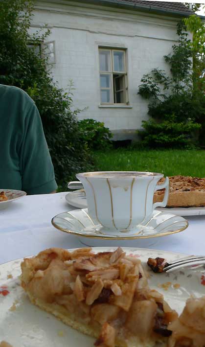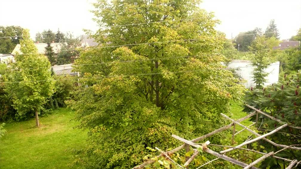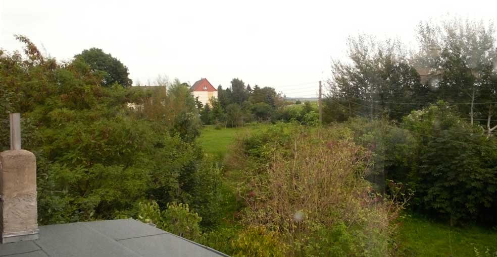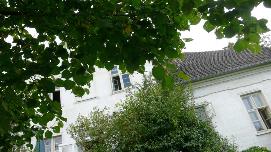 und wieder an der Seite des Haus, wo noch die Profile unter dem Dach und um die Fenster in Teilen einzig erhalten blieben