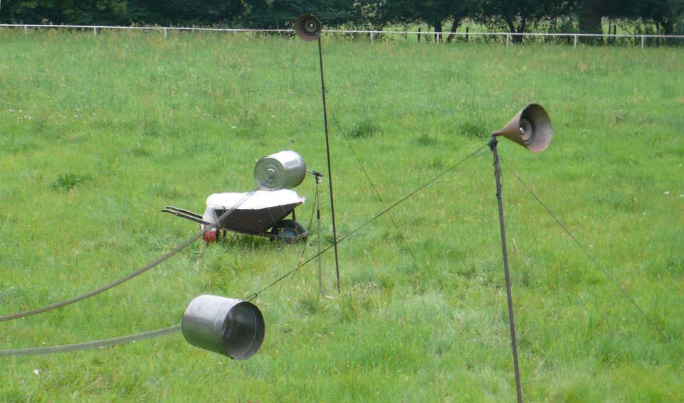 "Die Klanginstallation versteht sich als ein Requiem auf eine alte Lansrbeiterin in Övelggönne, die als Flüchtling nach dem Krieg aus Vangerin nach Ost-Holstein kam, und auf dem Abriss einer alten Scheune in Övelgönne, die auf dem Acker "Langer Schlag" stand. In Zusammenarbeit mit Michael Maria Kammertöns schufen kleine Spiralen aus Stahl sphärische Klänge und verdichteten sich zu Geräuschdichtungen . 16 Uhr Loitz."