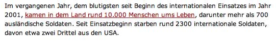 Die Welt wartet auf die Botschaft eines Verständnises für die Toten in Afghanistan und die Armen in Palästina. Damit die Trauer um die eigenen Toten in Ägypten und überall nun angenommen werden kann und überall. Und endlich aufhört, was jetzt rächend Unheil schafft. Für das, was hier wie über bis nicht gesagt wurde.