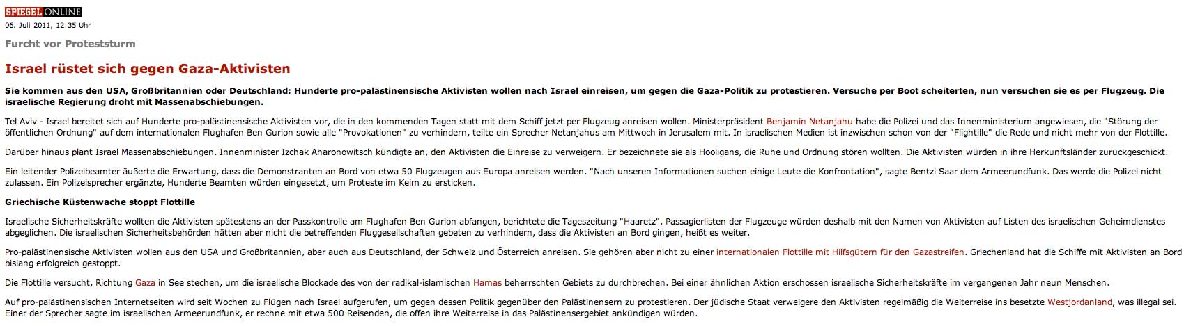 Ein leitender Polizeibeamter äußerte die Erwartung, dass die Demonstranten an Bord von etwa 50 Flugzeugen aus Europa anreisen werden. "Nach unseren Informationen suchen einige Leute die Konfrontation", sagte Bentzi Saar dem Armeerundfunk. Das werde die Polizei nicht zulassen. Ein Polizeisprecher ergänzte, Hunderte Beamten würden eingesetzt, um Proteste im Keim zu ersticken.