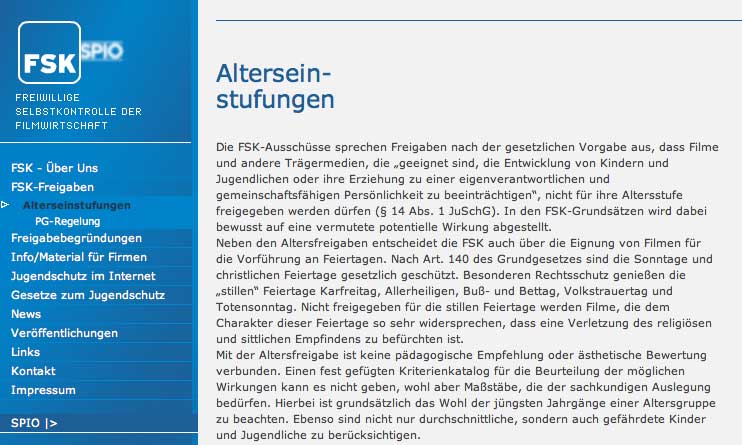 Neu. Die alte FSK macht sich wieder wichtig. Alle DVDs sollen wie Kinofilme eingeteilt werden, geprüft, mit teuren Anträgen und Verunstaltung des Erscheungbildes. Was wenn so Bücher aussähen oder Musikplatten. Wir sind in der Falle altväterlicher Kino-Rituale. Aber sonst dürfen die DVDs in Deutschland nicht auf dem Markt -also in Geschäften, bei Amazon- verkauft werden.