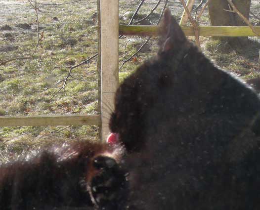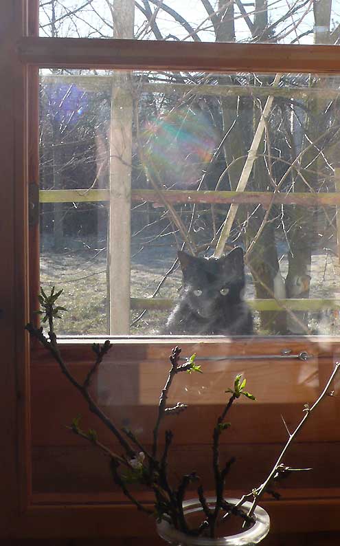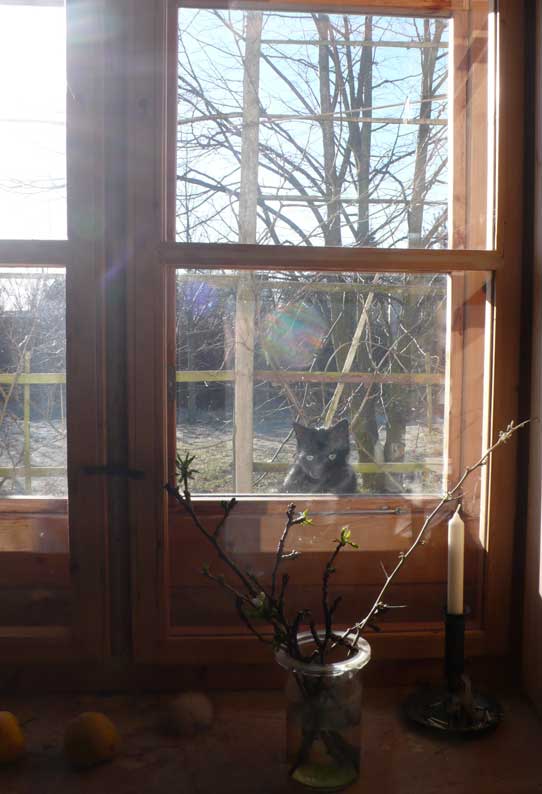 die scheue Nachbarin sonnt sich heimlich ganz nah auf dem Fensterbrett aussen, was wird geschehen wenn der Weisse kommt aus München