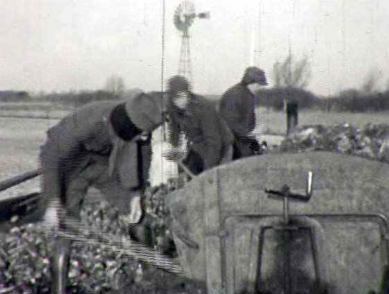 An der Trebel die Rübenernte und die Gefangenen im Krieg am Schiff.