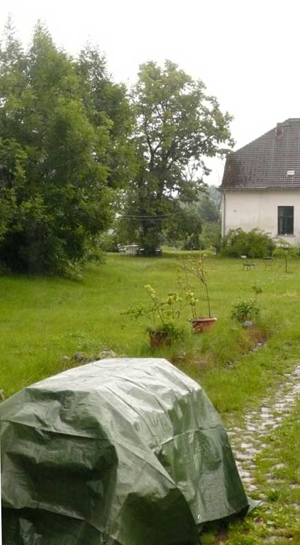Gekommen, was nicht ins Haus passt. Aus dem Haus. Wo heres kommt. Zuschwer, zu sperrig. Abgeladen auf dem Weg zum Haus, in Regen und Not.